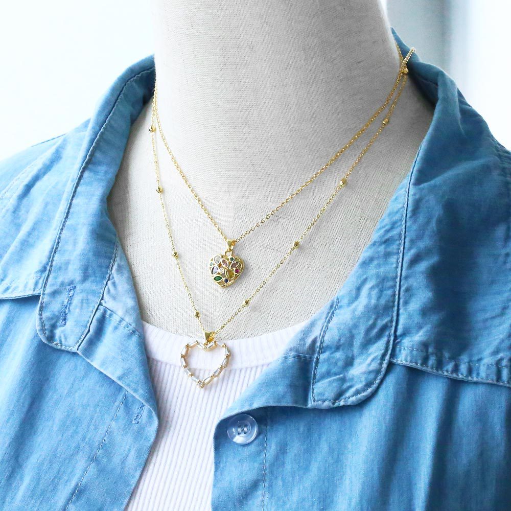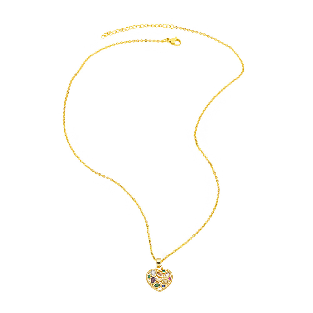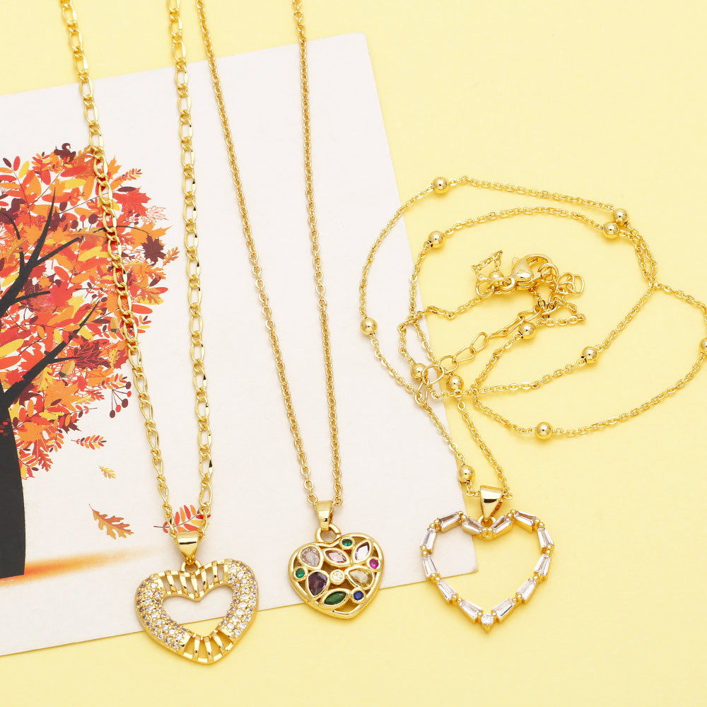 Temperament versatile love necklace female European and American fashion simple micro-inlaid colored zircon heart-shaped sweater chain nkb348