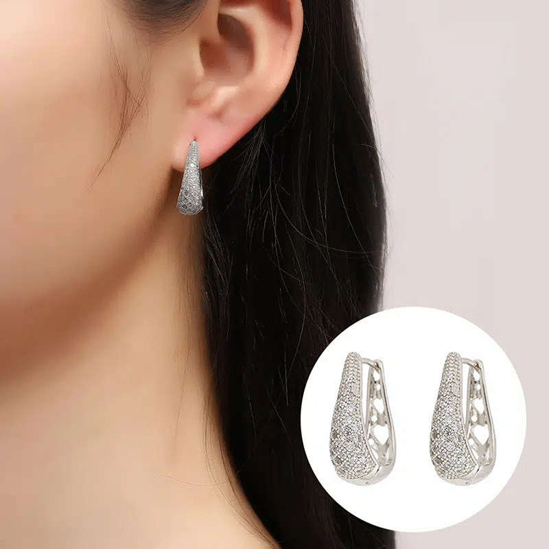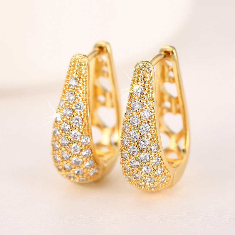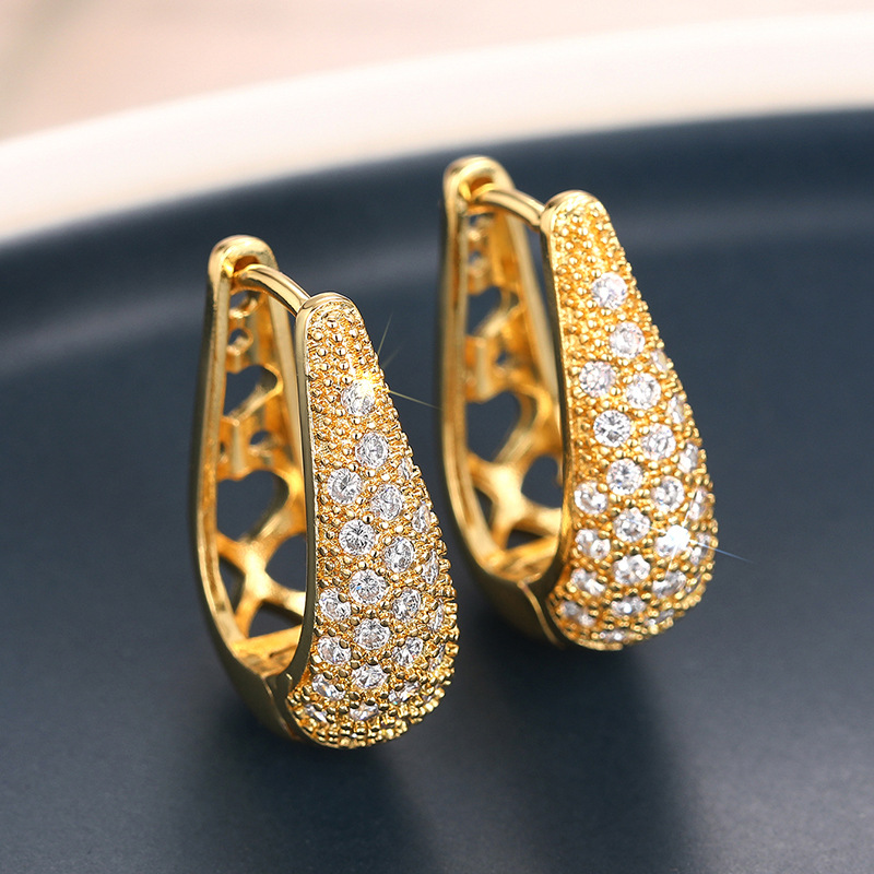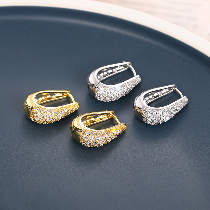 European and American personality retro U-shaped zircon earrings earrings light luxury high-end simple temperament earrings earrings female ert86