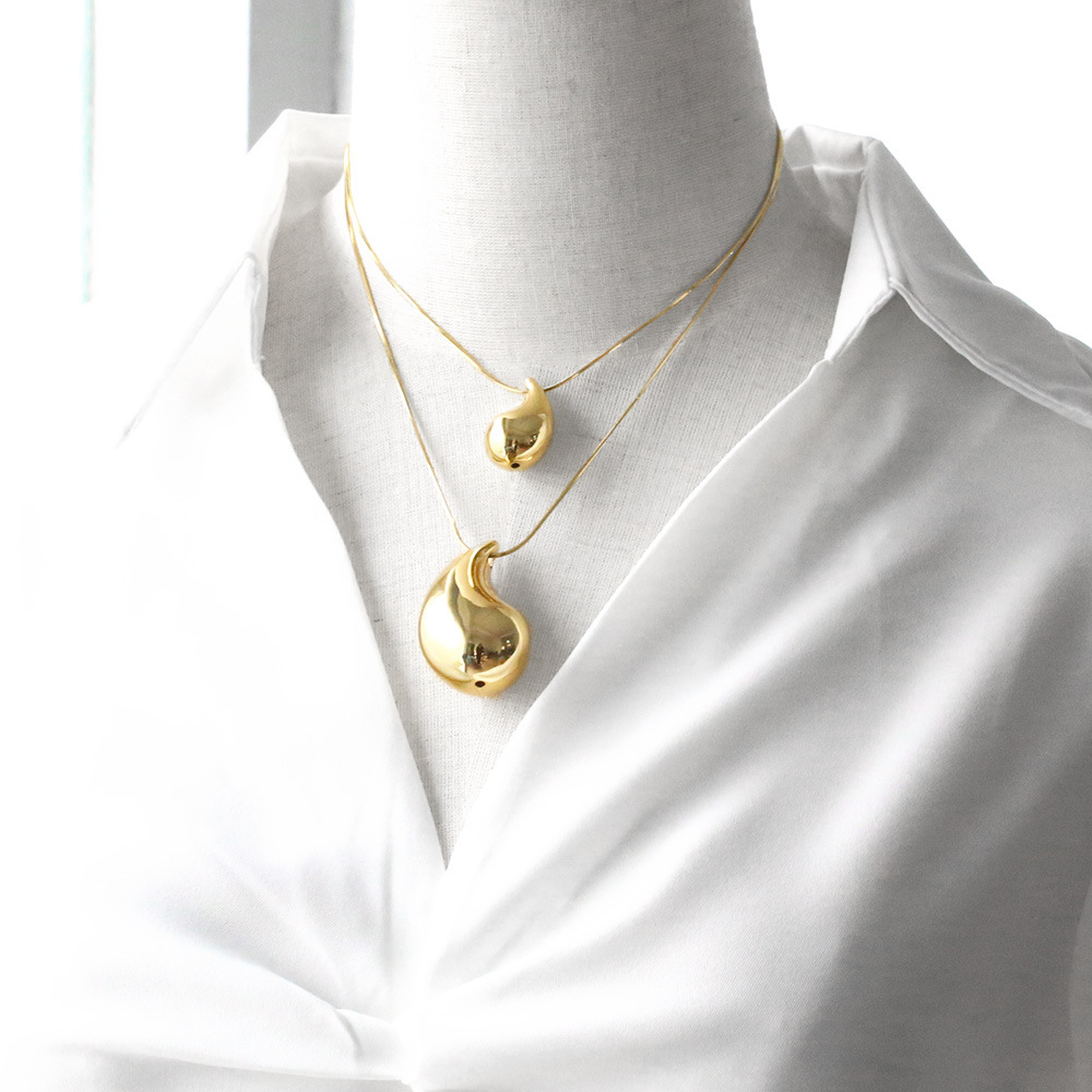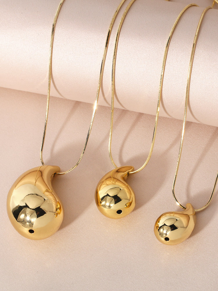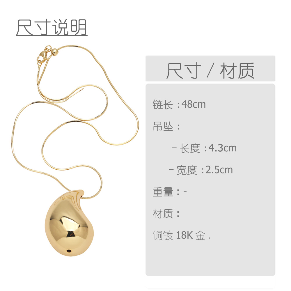Temu glossy water drop pendant necklace hip hop versatile copper plated 18k gold clavicle chain nkb885