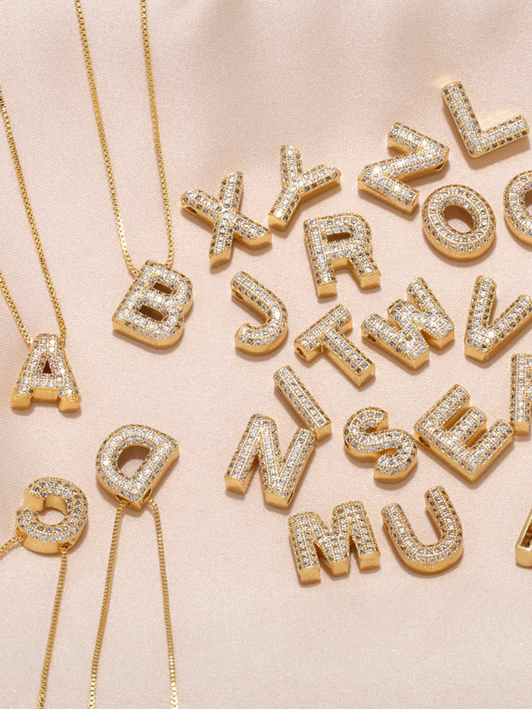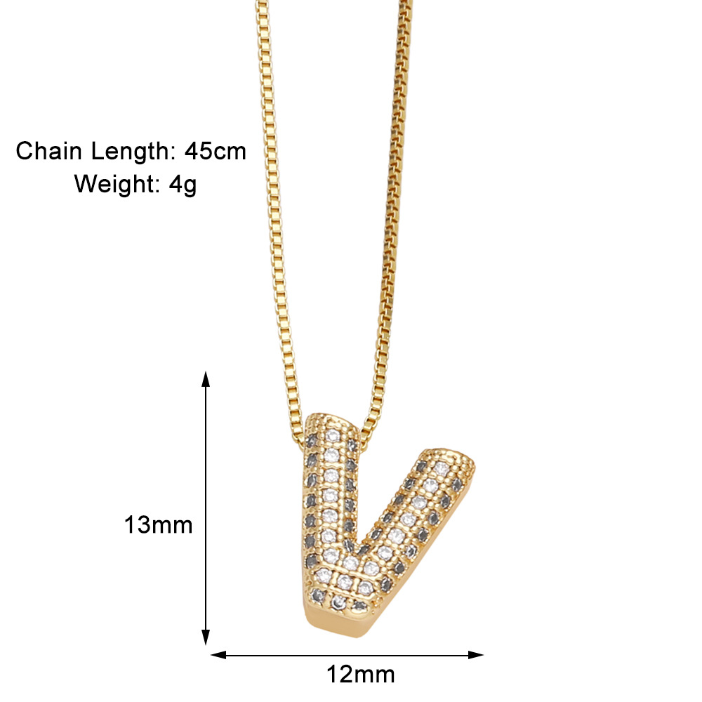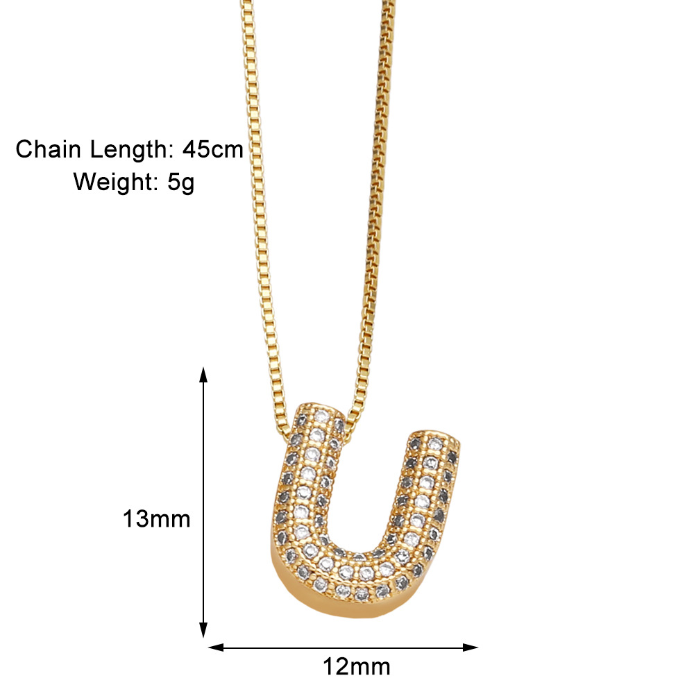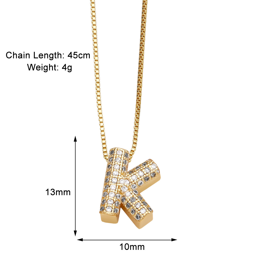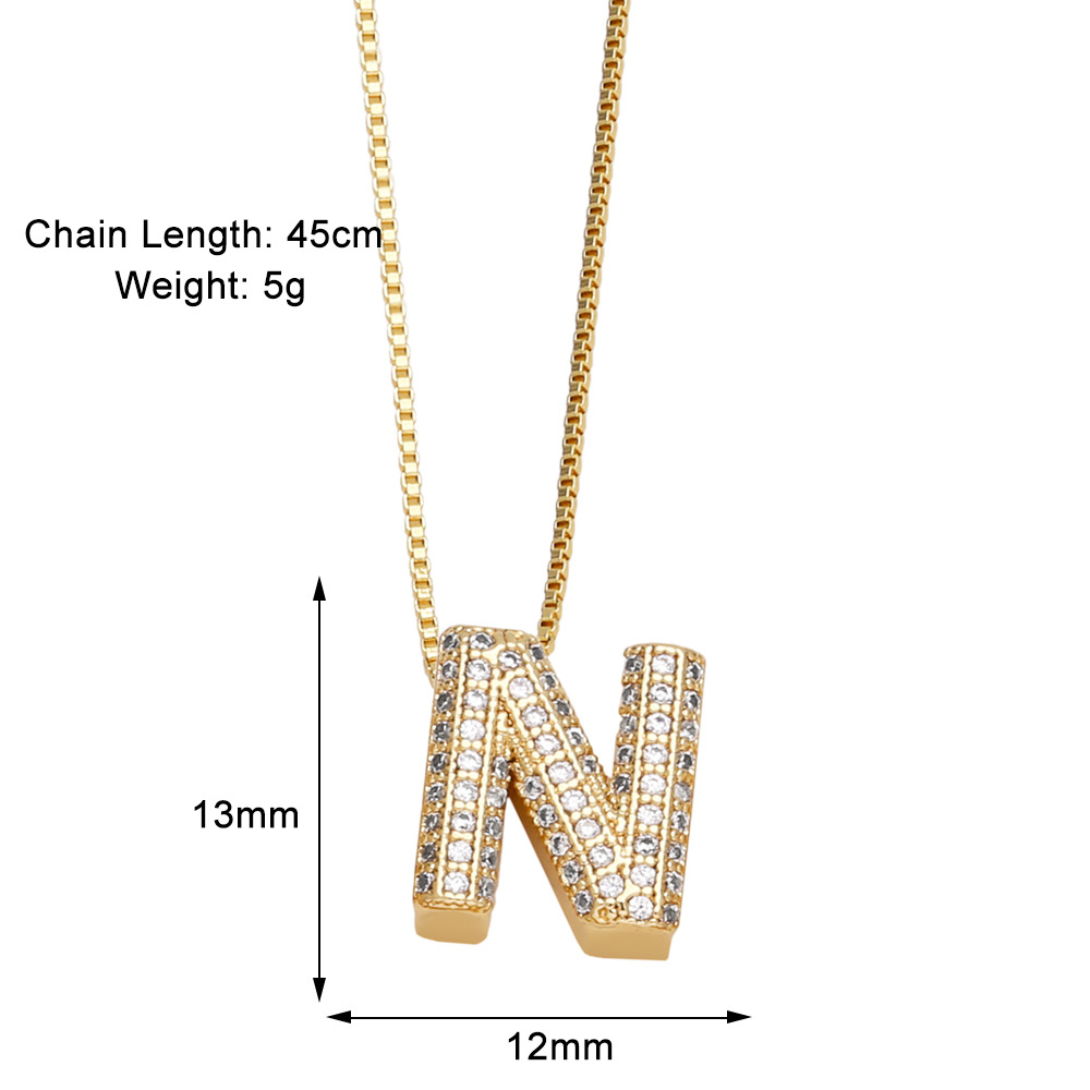 Letter necklace European and American new color zircon necklace with diamond surname English AZ letter necklace nkp25