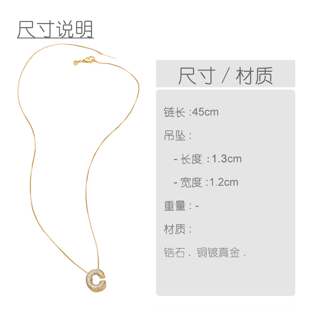 AS jewelry 26 English letters necklace female copper plated real gold inlaid zircon clavicle chain nky42