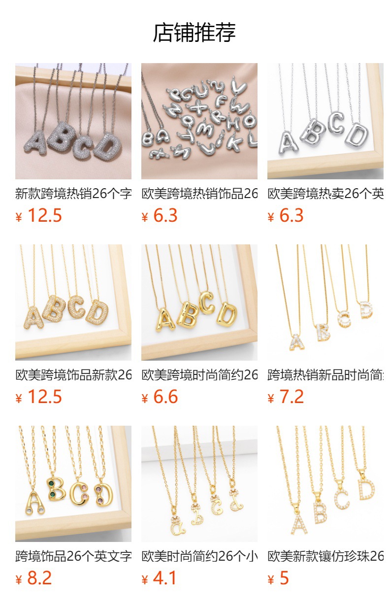 Temu hot selling 26 English letters necklace inlaid with zircon gold-plated clavicle necklace jewelry nkp54