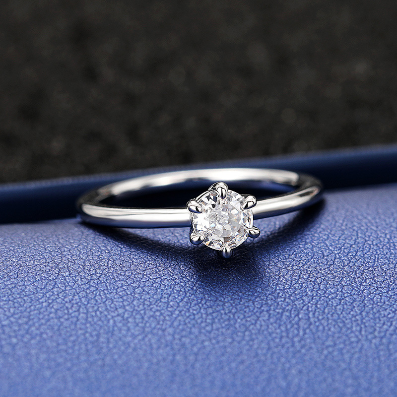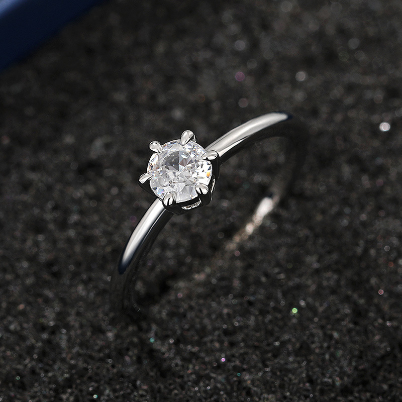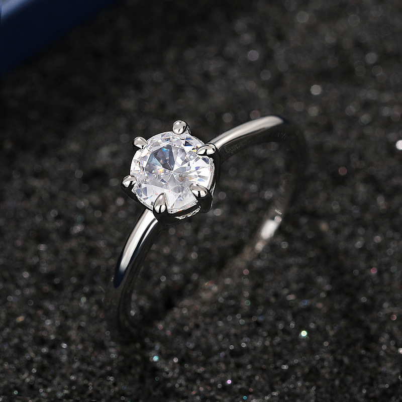 Micro-inlaid celebrity style classic all-match popular ring six-claw zircon wedding ring European and American style light luxury ring