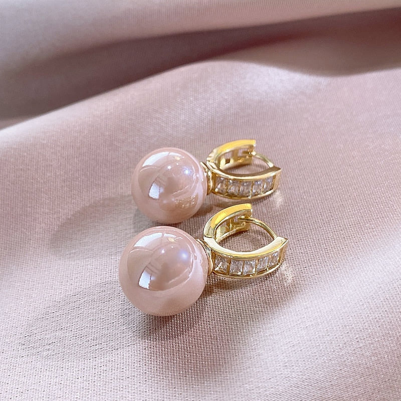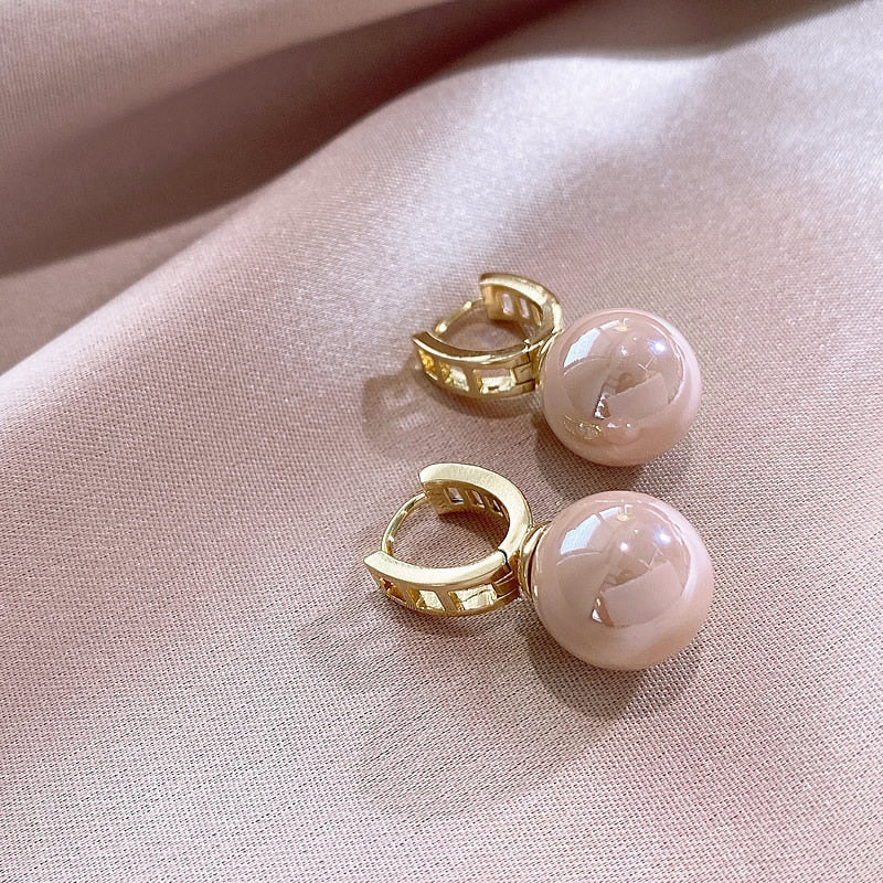 TEMU's new hot-selling earrings, pink pearl earrings for women, niche design ear clips, light luxury French earrings