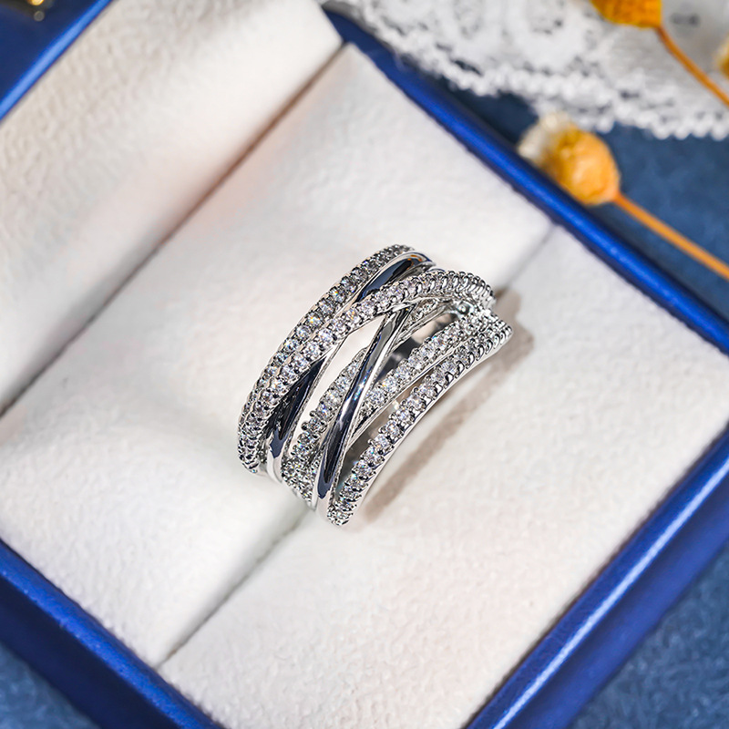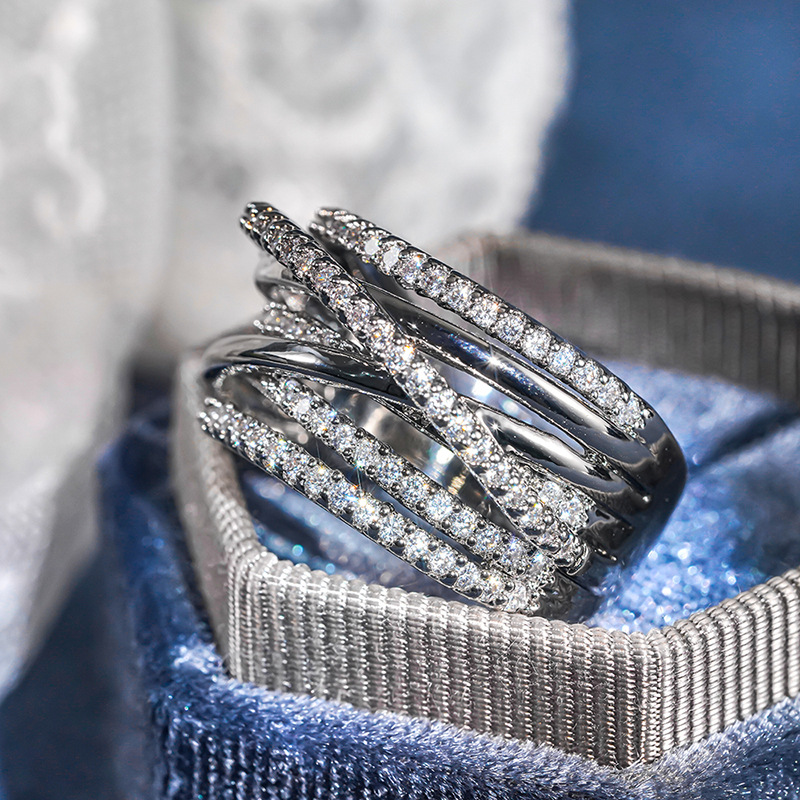 Micro-inlaid celebrity style classic all-match popular ring six-claw zircon wedding ring European and American style light luxury ring