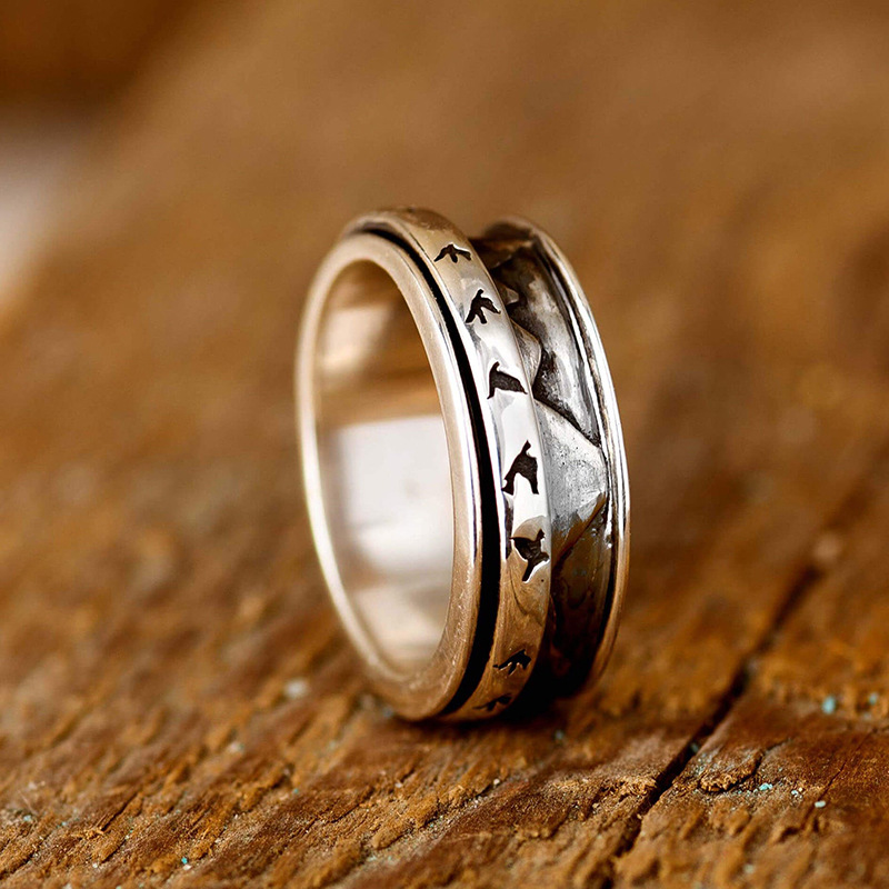 The index finger ring of the mountains is unique and majestic, with a retro mountain ring and the swallows flying south in a continuous action bracelet.