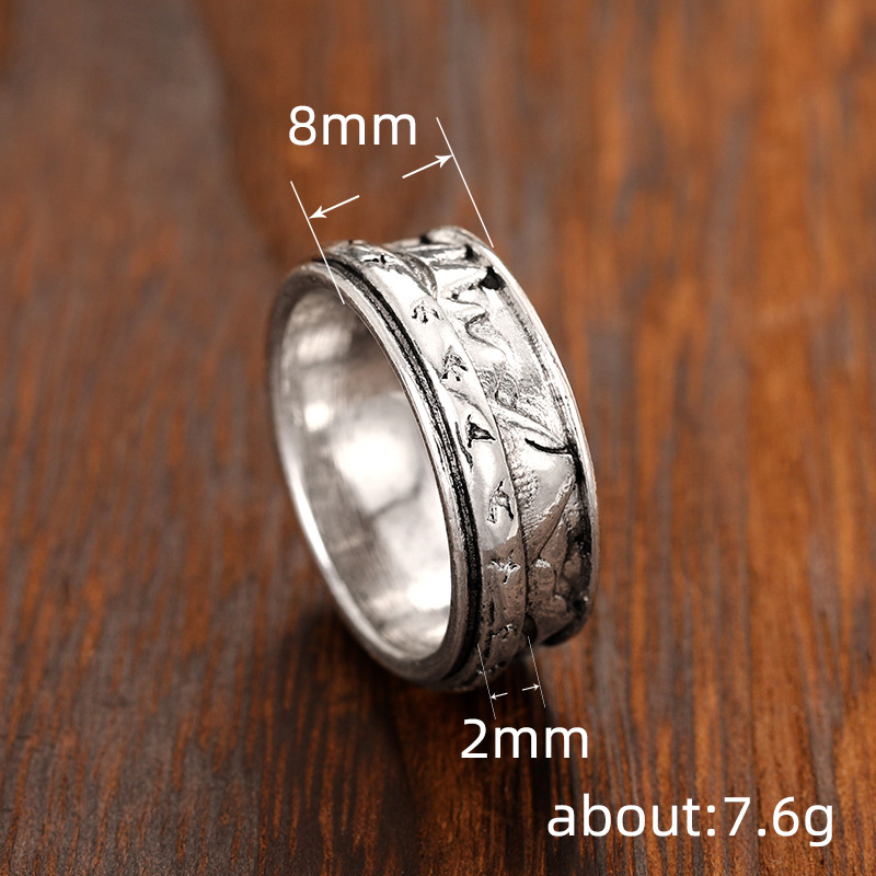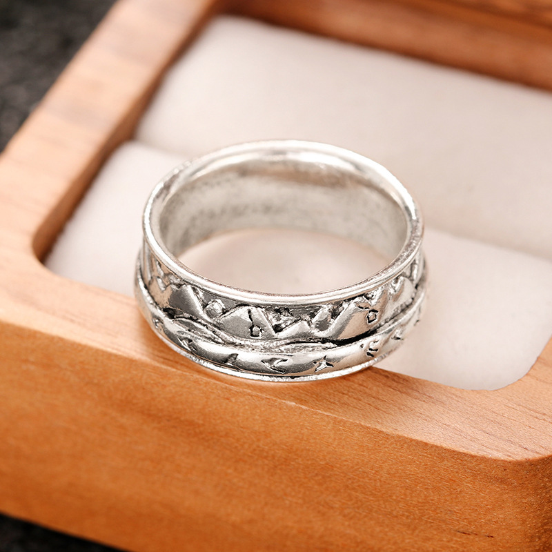 Classic retro engraved auspicious flower ring classical wide version Miao ring Yunnan ethnic style men and women's jewelry