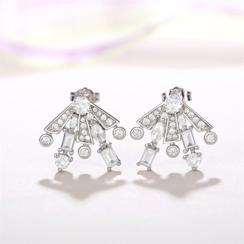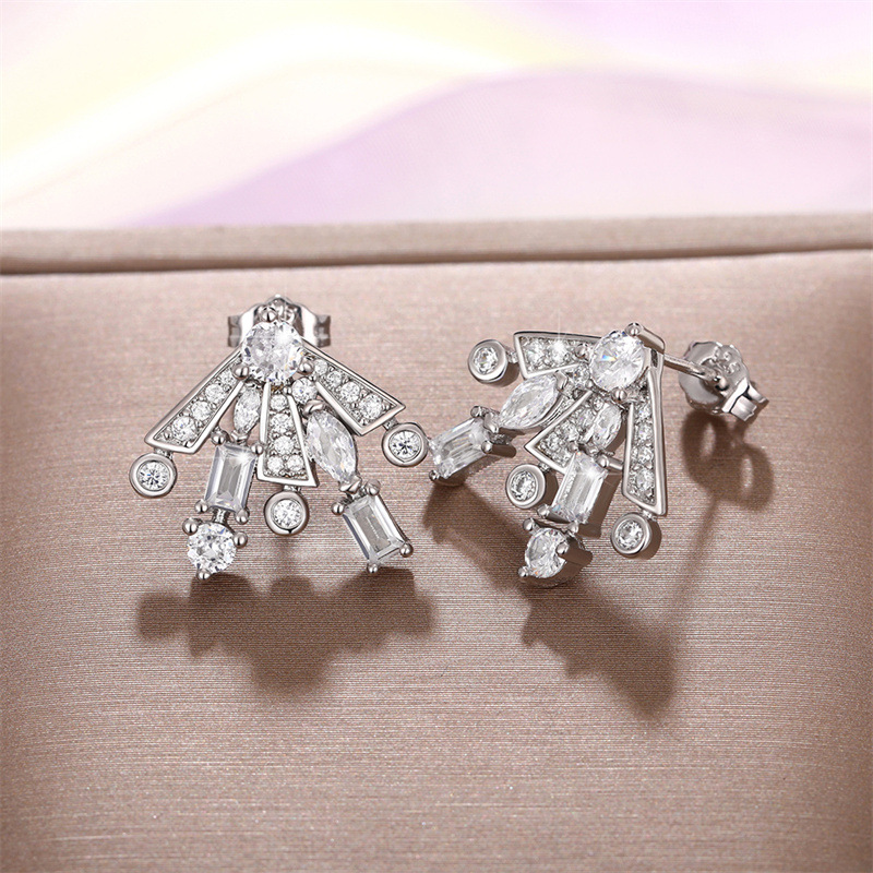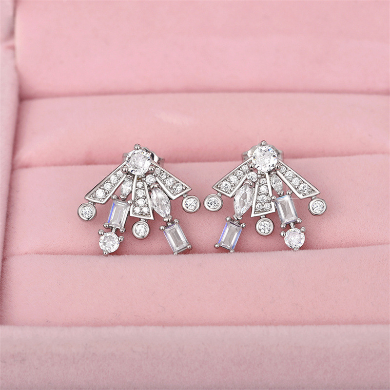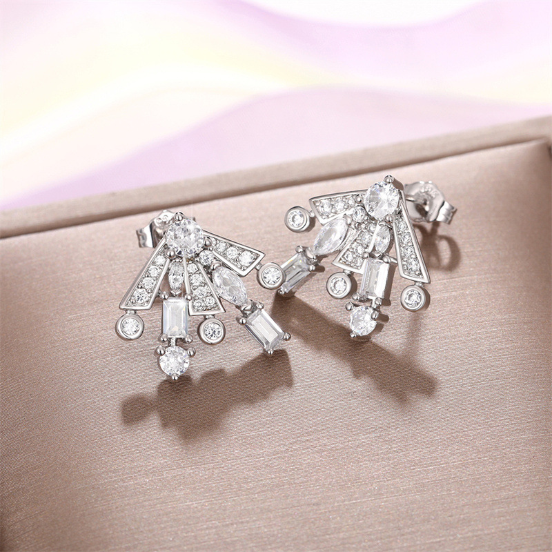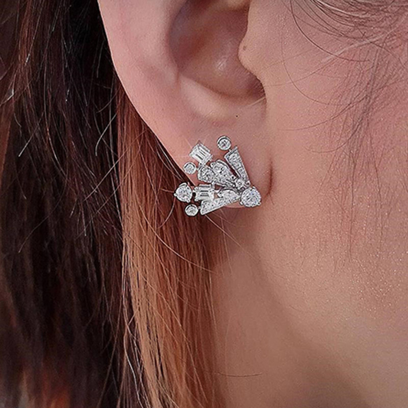 The same style of gorgeous fireworks earrings, sweet temperament, geometric zircon earrings, women's slim and fashionable earrings
