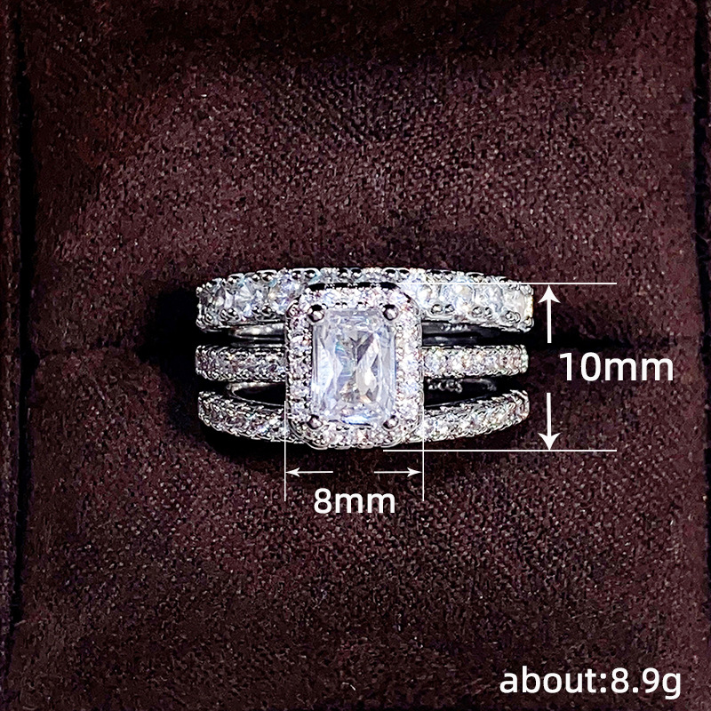 Hot selling new princess square ring European and American hot style inlaid zircon women's jewelry engagement proposal ring
