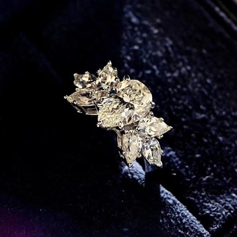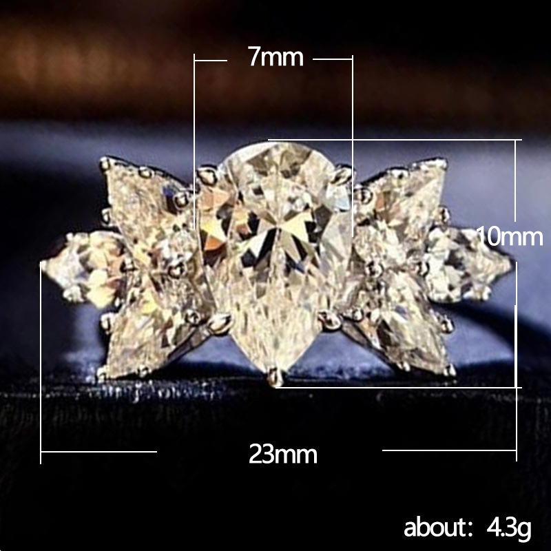 Trendy cool niche jewelry fashion light luxury Internet celebrity water drop zircon ring birthday gift ring