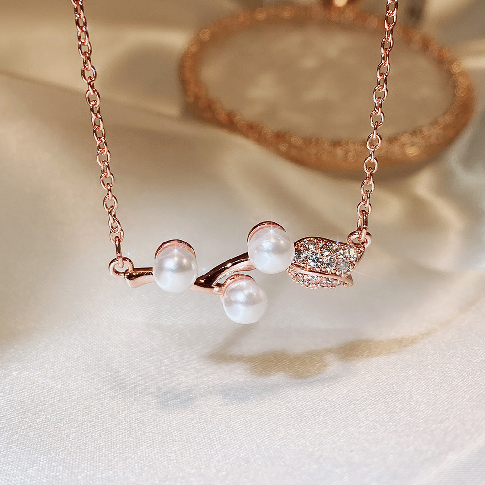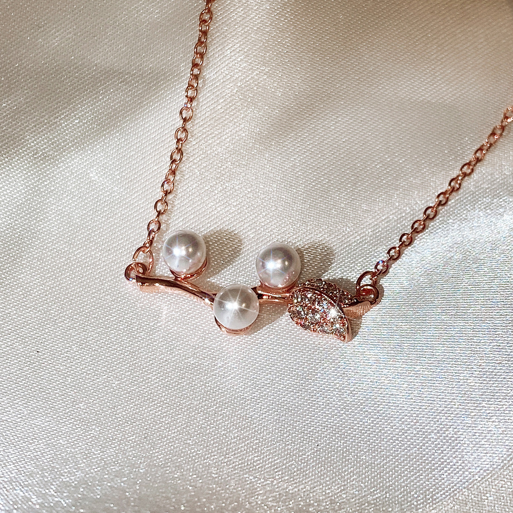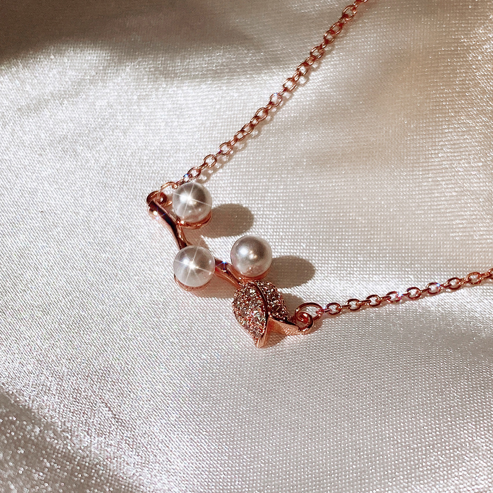 Trendy Japanese and Korean style necklace, creative rose imitation pearl necklace for women, exquisite zircon clavicle chain