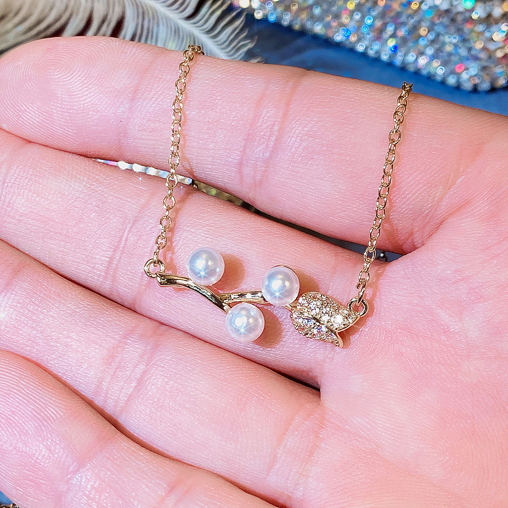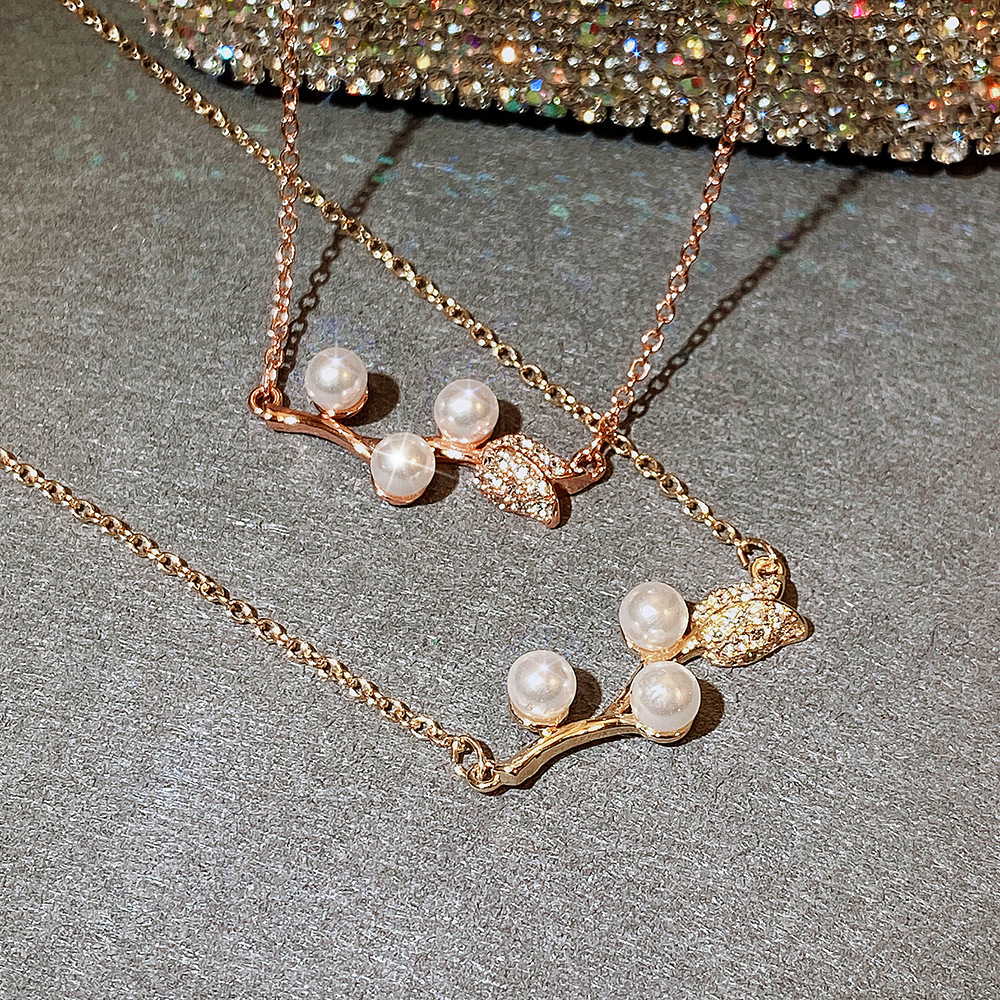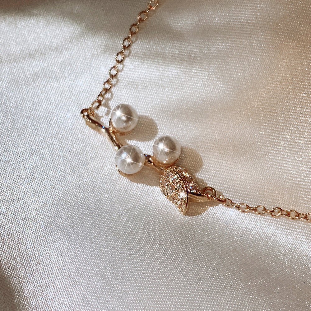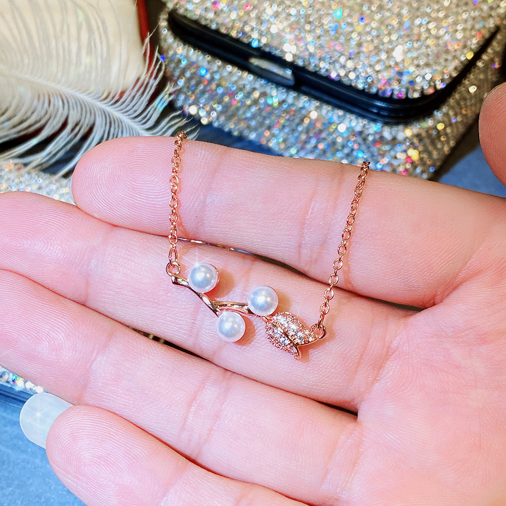 Trendy Japanese and Korean style necklace, creative rose imitation pearl necklace for women, exquisite zircon clavicle chain