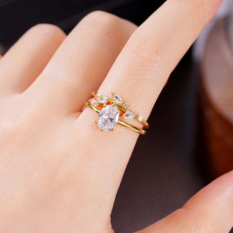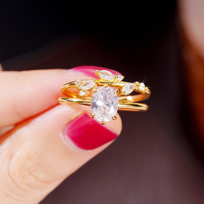 European and American luxury design ring fashionable temperament horse eye zircon ring multi-layer hollow design index finger ring