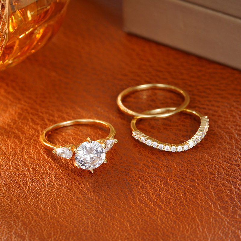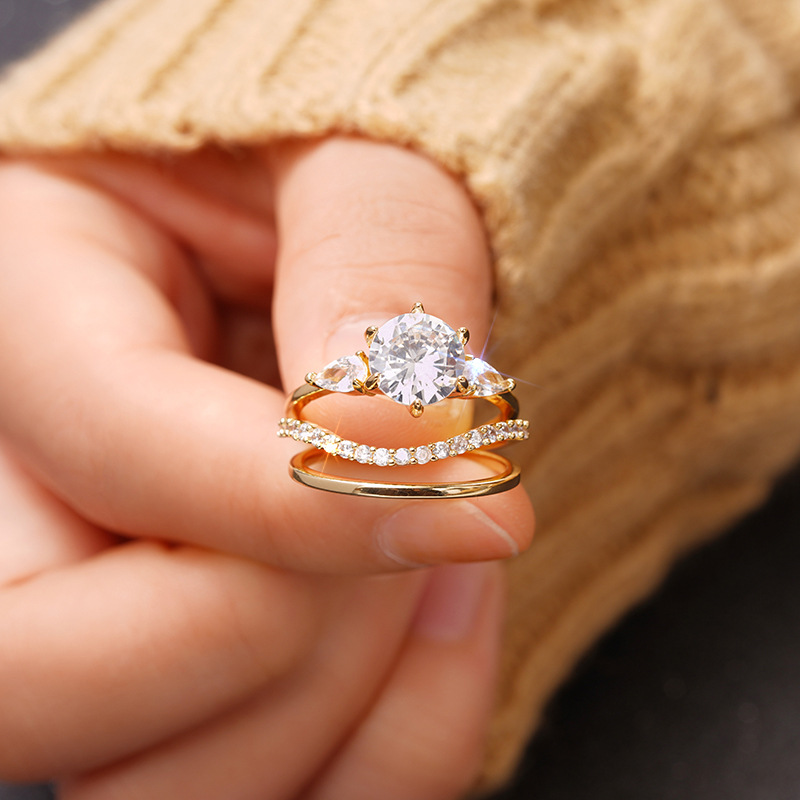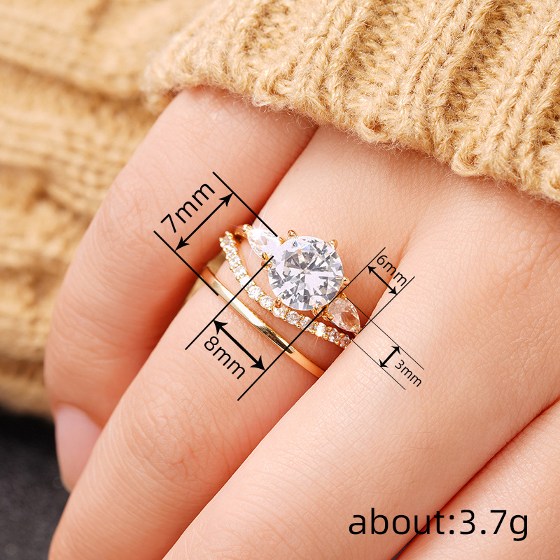 Valentine's Day hot-selling geometric teardrop ring three-piece set engagement wedding jewelry design popular hot-selling