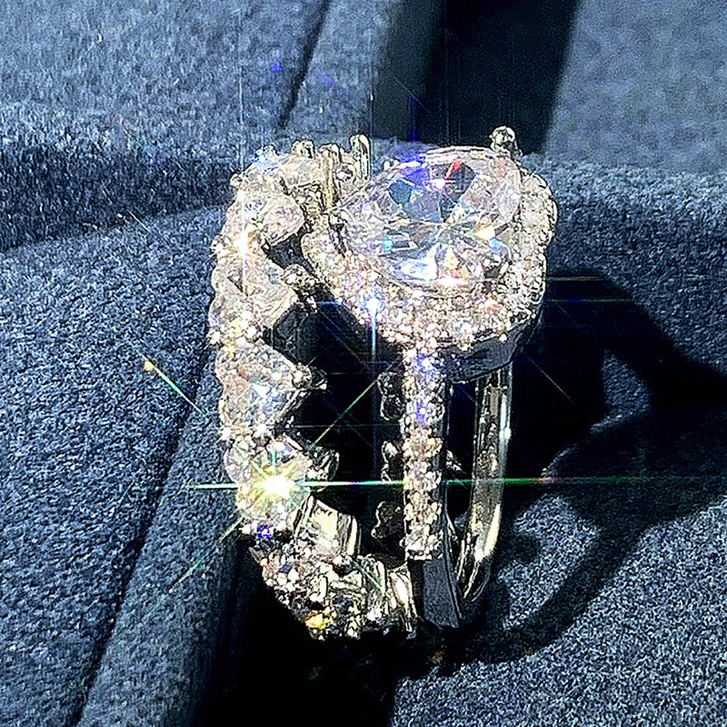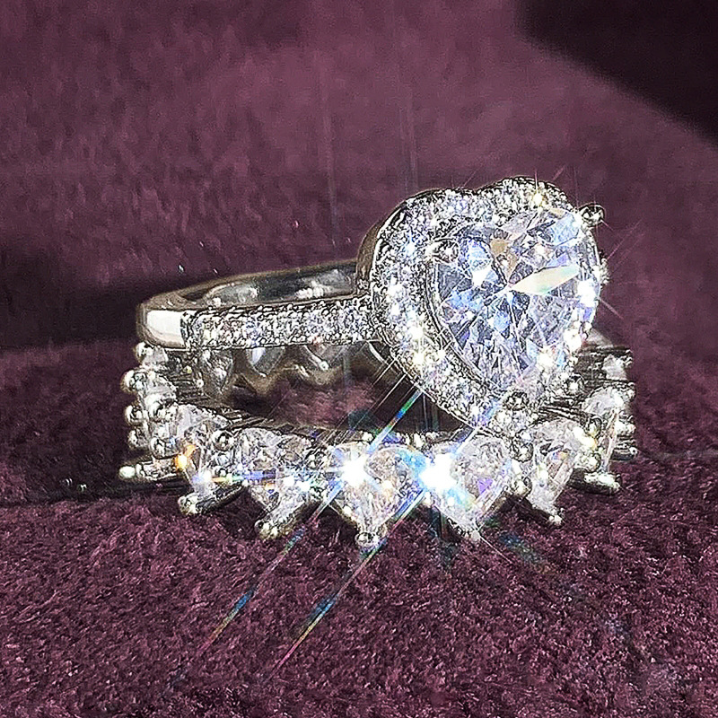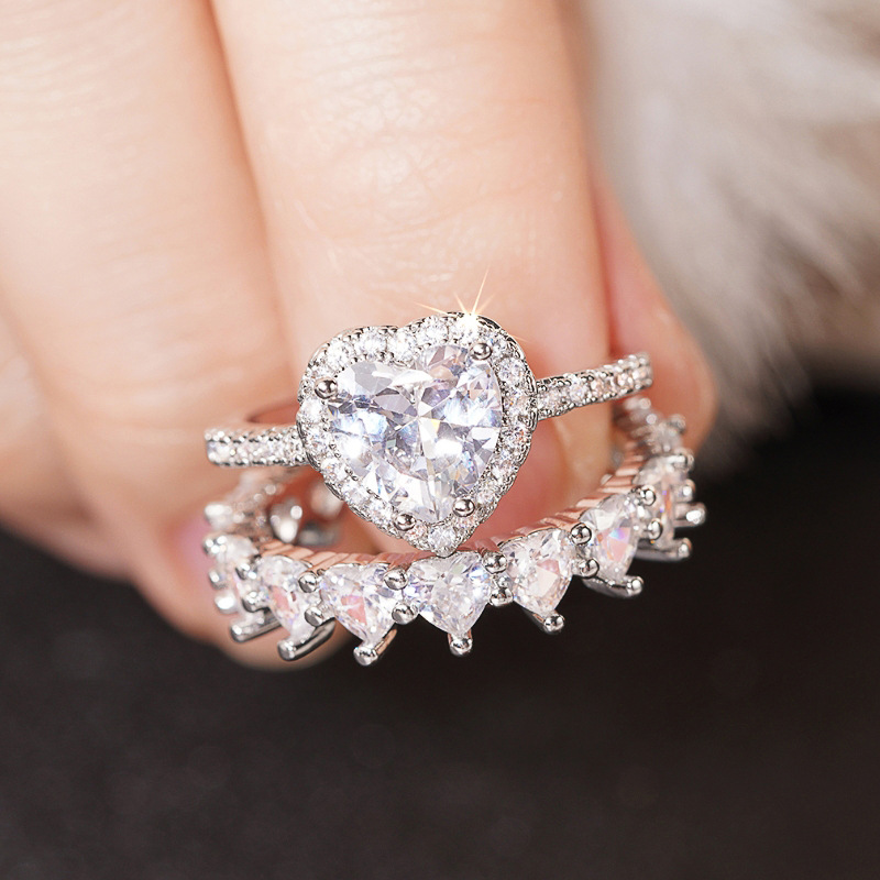 Valentine's Day Love Rings for Women Romantic Princess Wedding Gift Shiny Heart-Shaped Zircon Elegant Ring