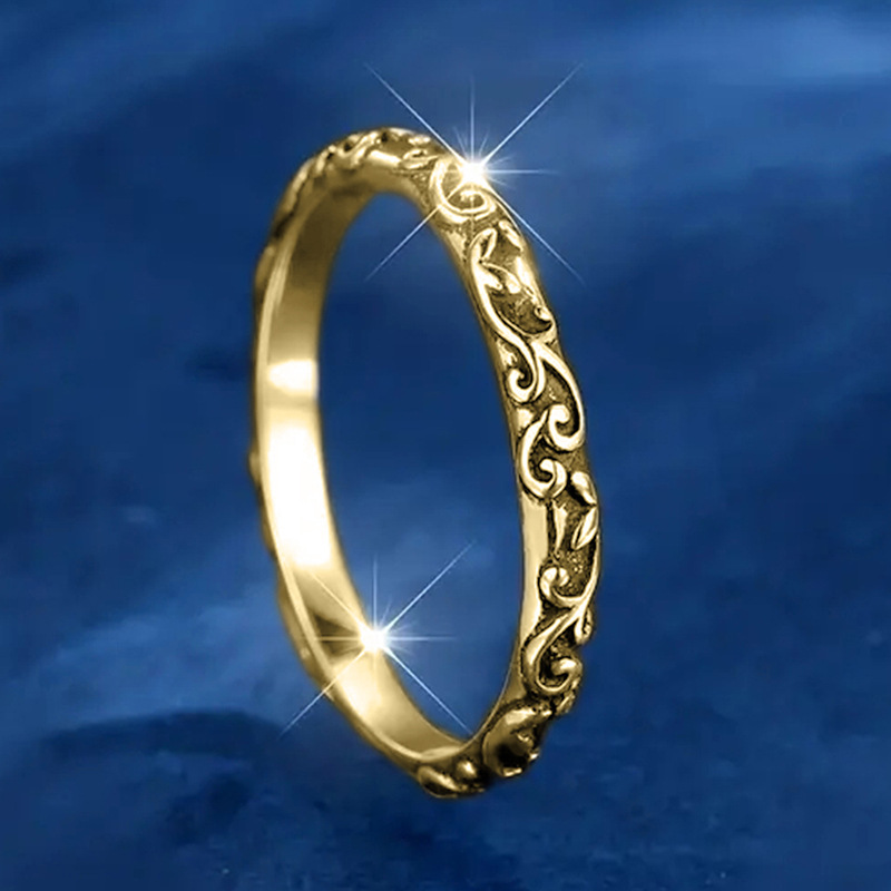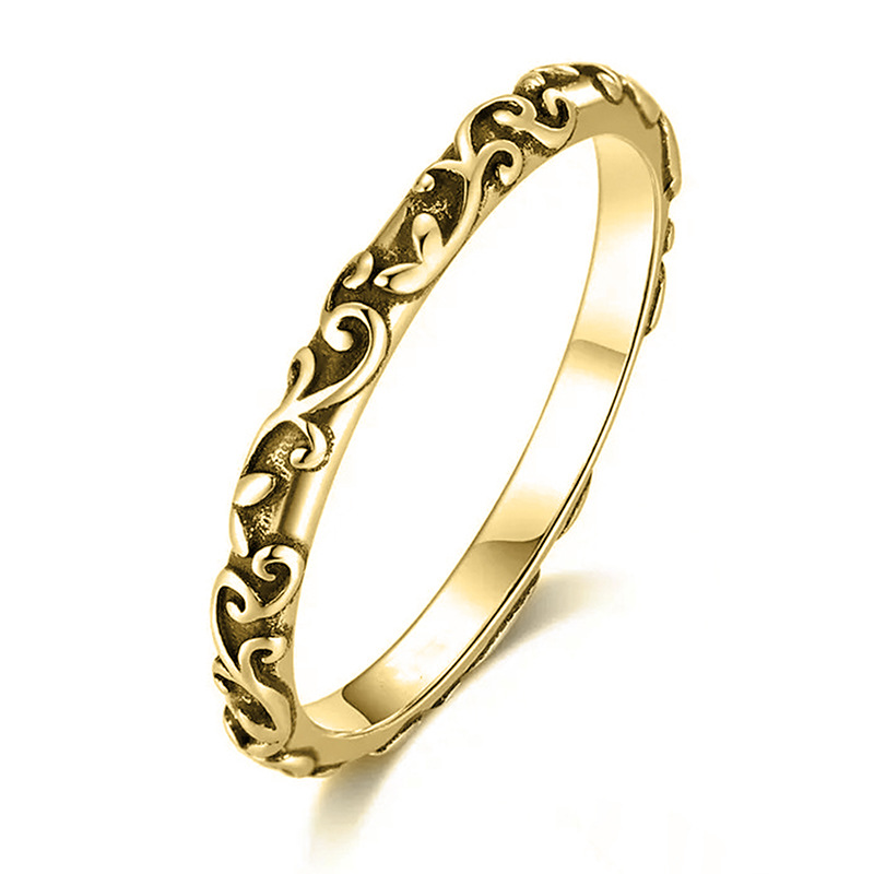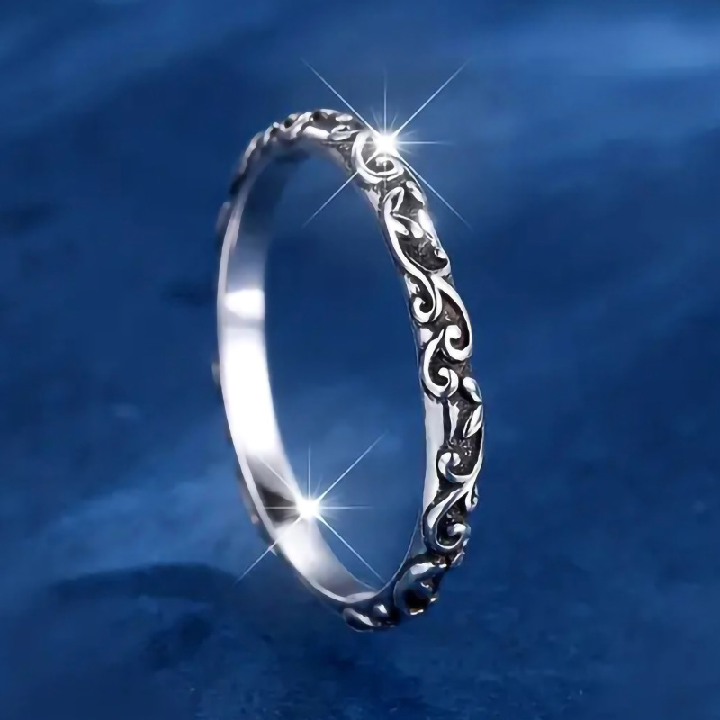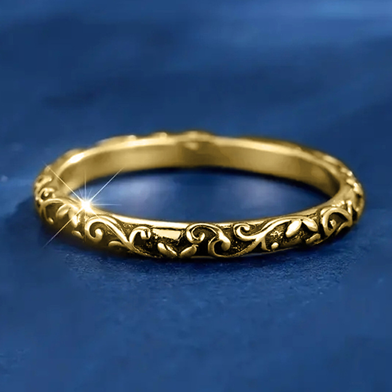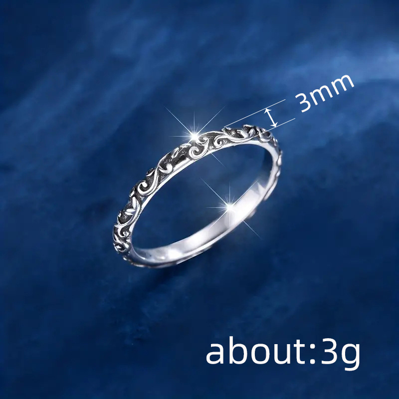 Vintage carved pattern ring retro old style flower vine ring European and American trendy ring