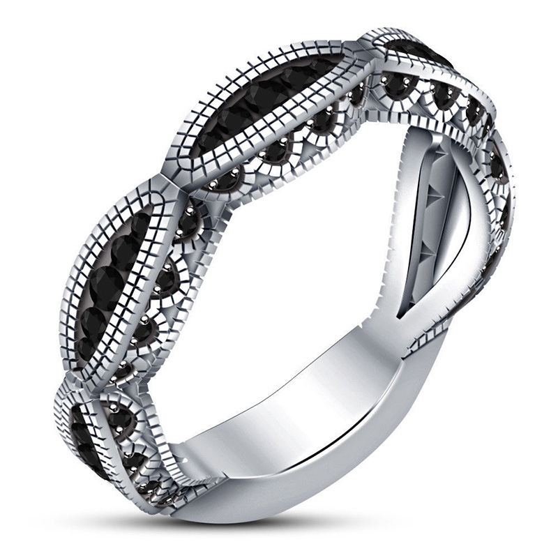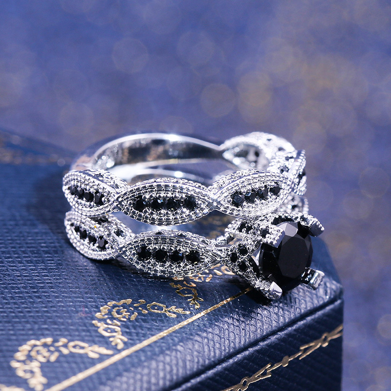Vintage couple jewelry ring wholesale European and American platinum-plated black zircon double-layer ring new style