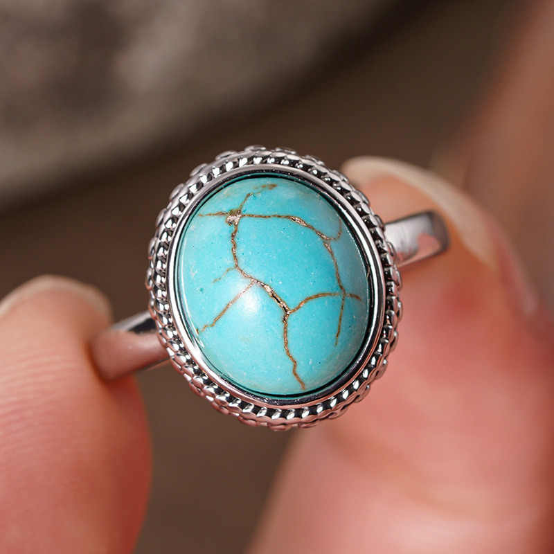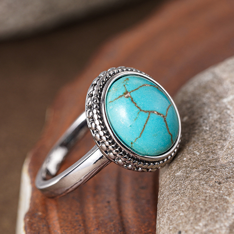 Vintage live hot selling retro rings medieval style vintage imitation turquoise jewelry factory direct sales