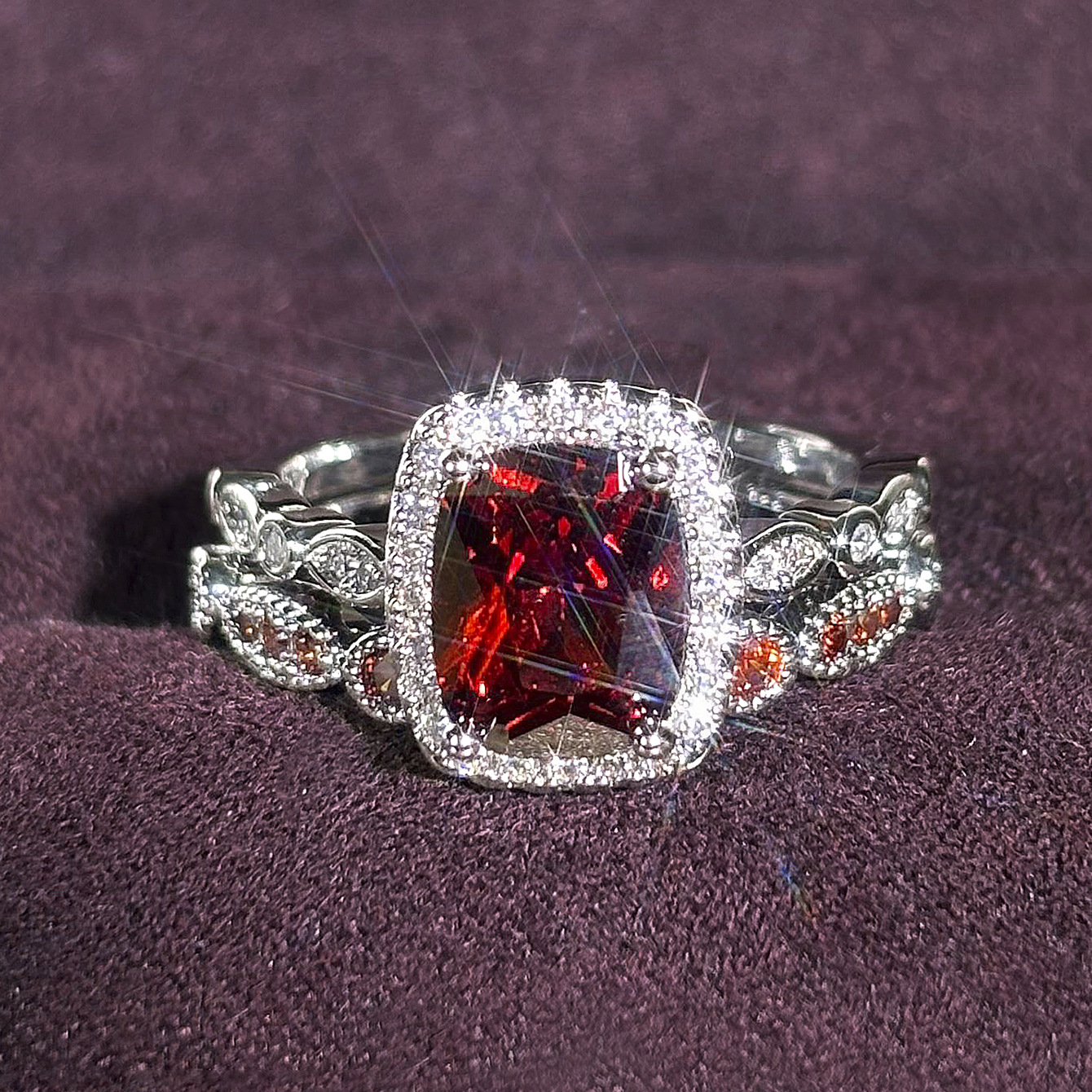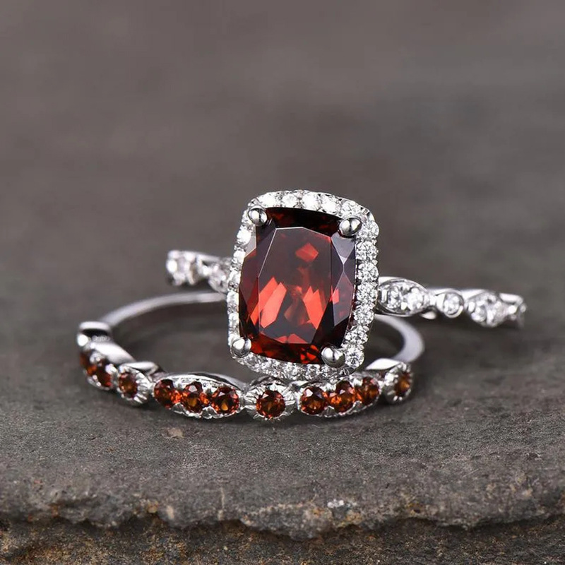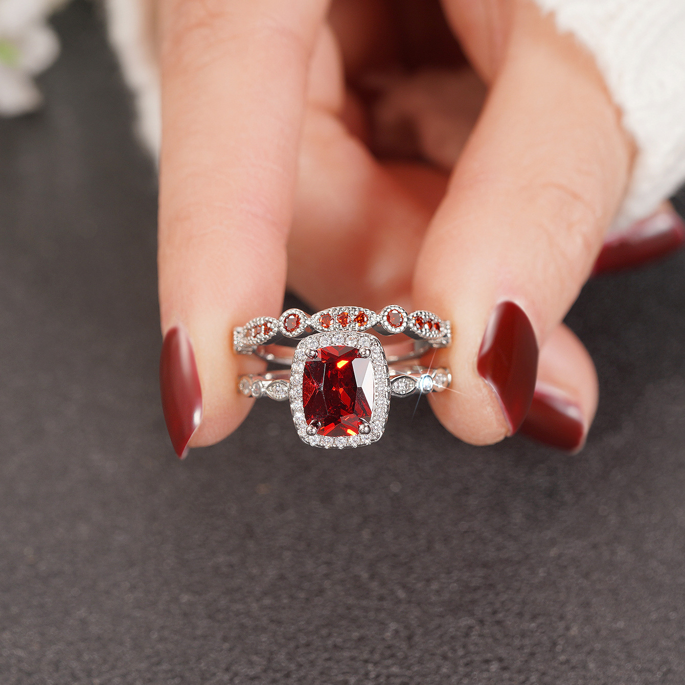 Vintage ring two-piece set for women, medieval light luxury square horse eye design jewelry, elegant Baroque