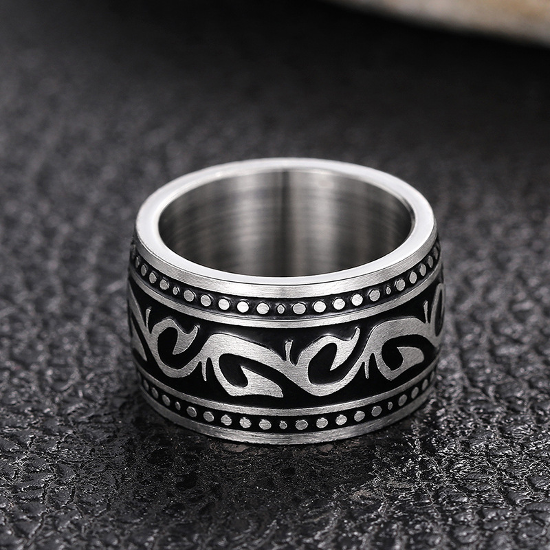 Vintage ring unisex textured stainless steel ring style retro fashion jewelry