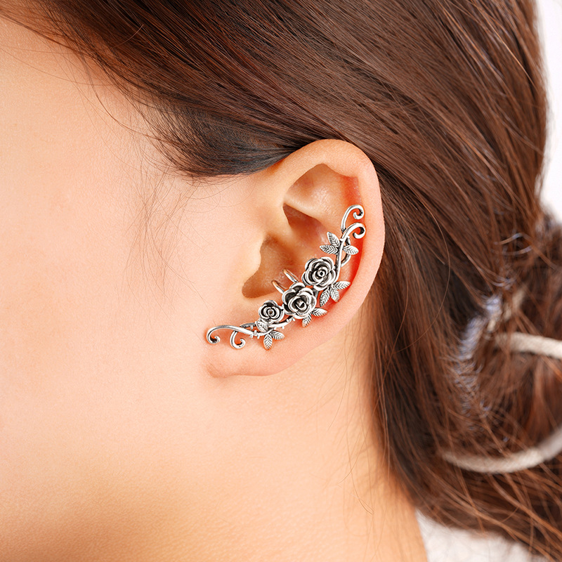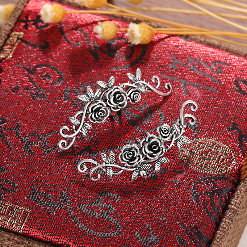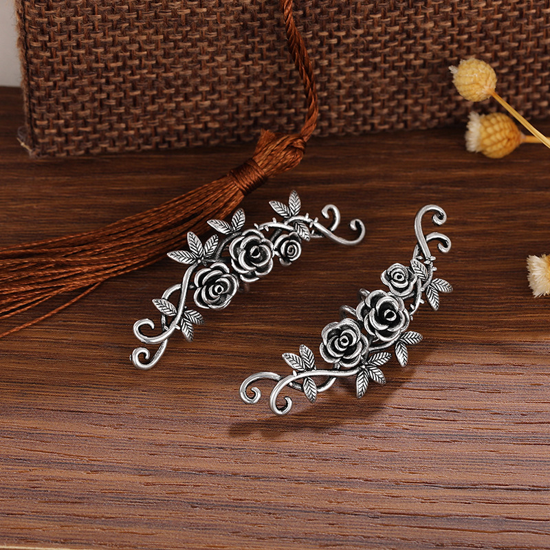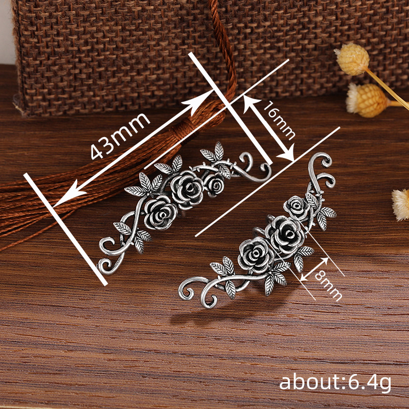 Vintage rose flower earrings for women, antique silver, romantic niche earrings, hot selling accessories