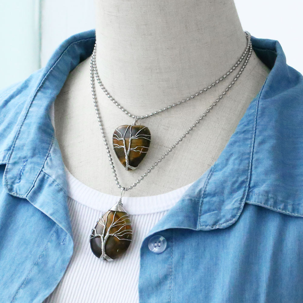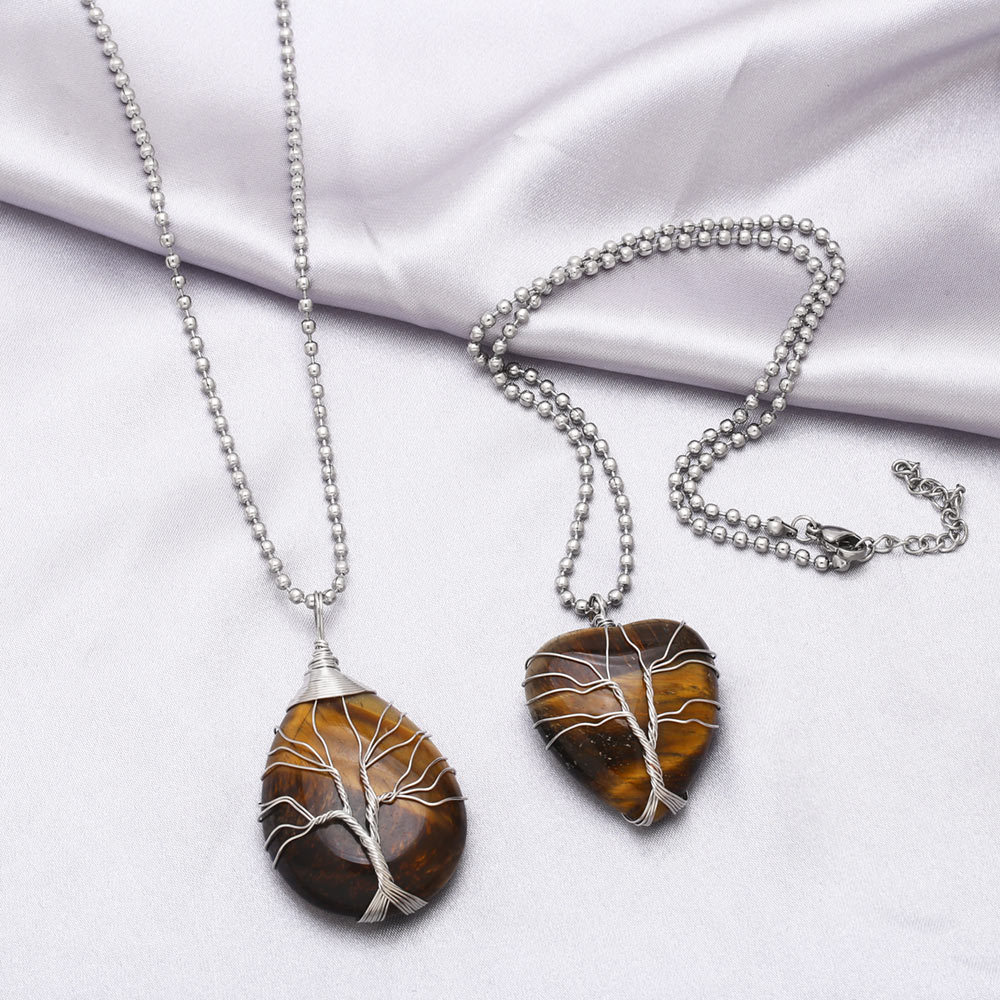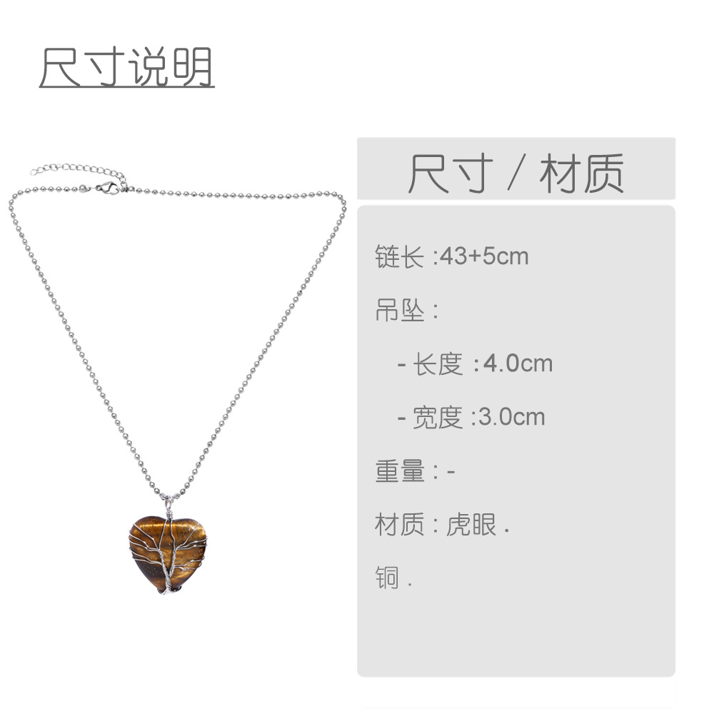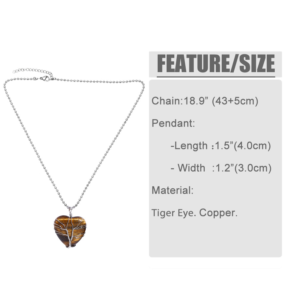 Vintage tiger eye stone heart shaped tree of life pendant necklace hand-wound winding fortune tree necklace nkb703