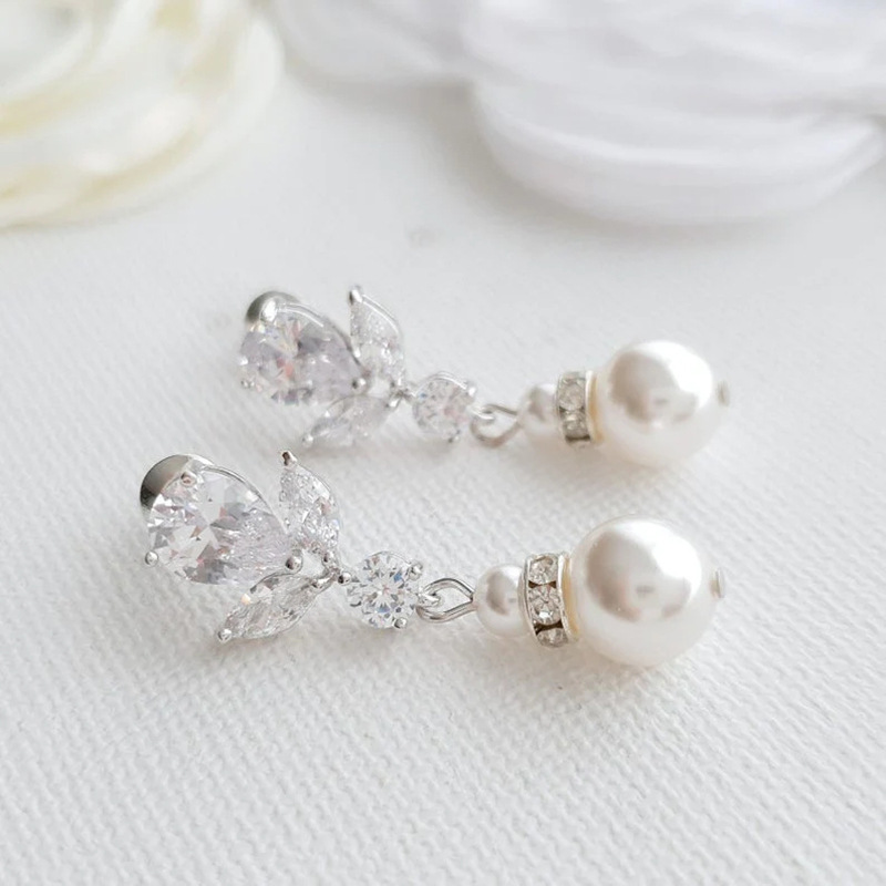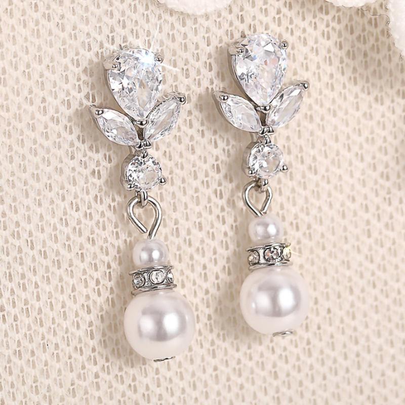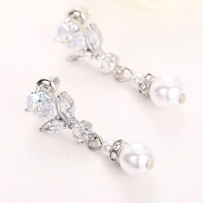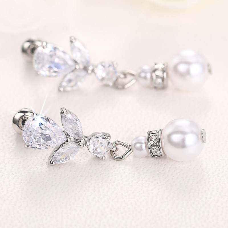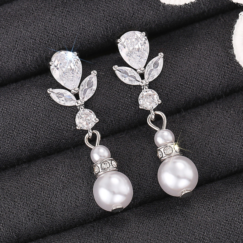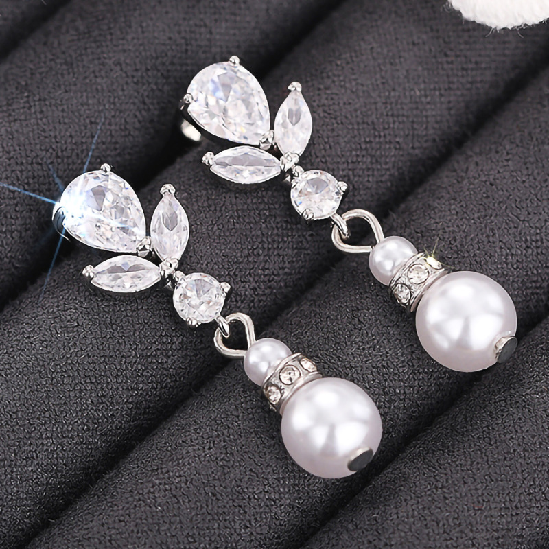 Water drop geometric design earrings for women, imitation pearls and zircon, elegant and elegant jewelry, fairy fashion, internet celebrity style