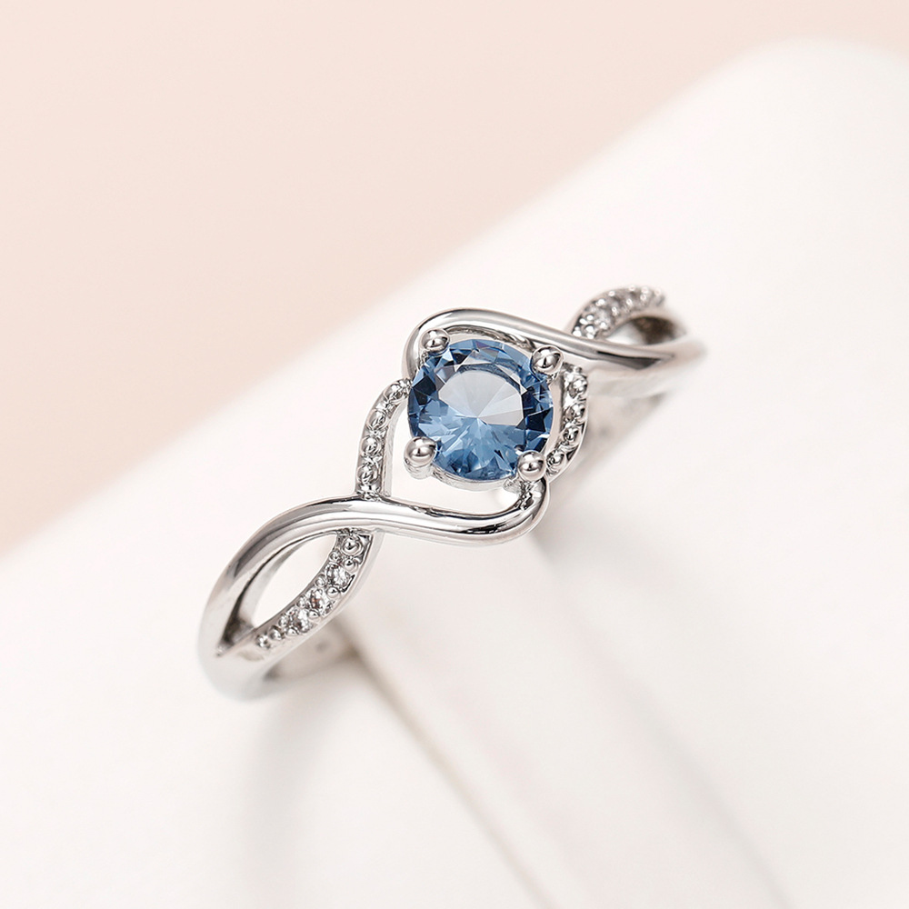 Wavy blue diamond zircon ring niche high-end luxury index finger ring fashionable women's personality jewelry