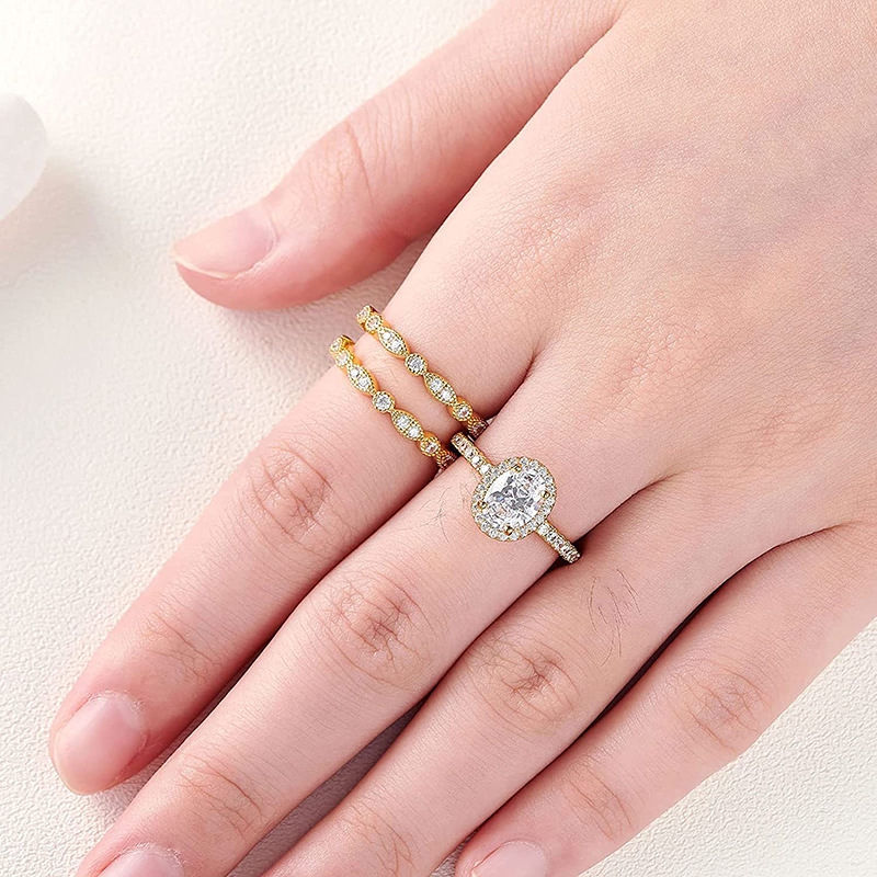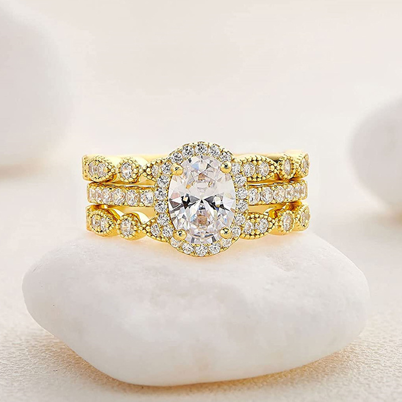 Wedding niche oval ring three-piece set fashionable French temperament ring popular wedding jewelry