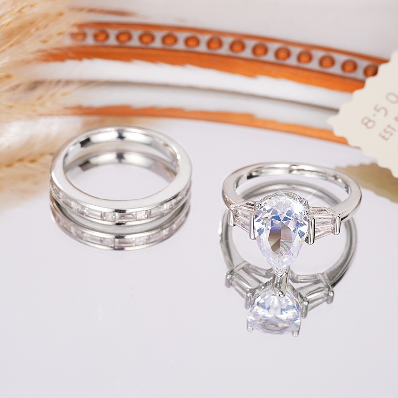 Wedding stacking exaggerated teardrop design couple rings for women personalized technology sense rings high-end fashion jewelry