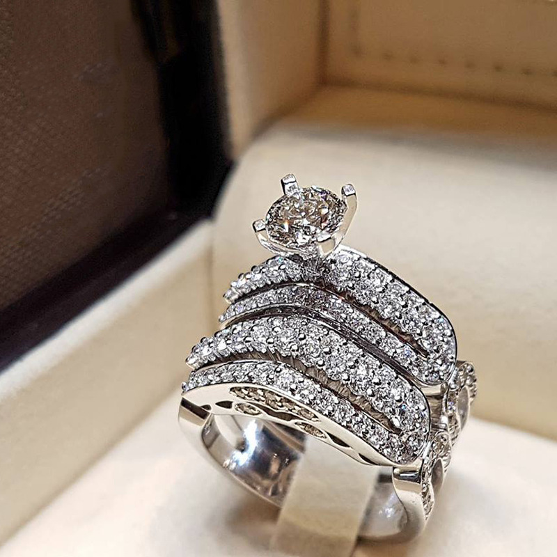 Micro-inlaid celebrity style classic all-match popular ring six-claw zircon wedding ring European and American style light luxury ring