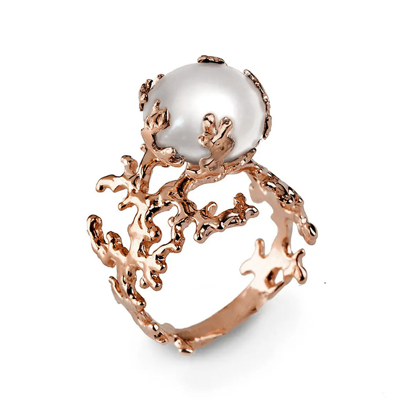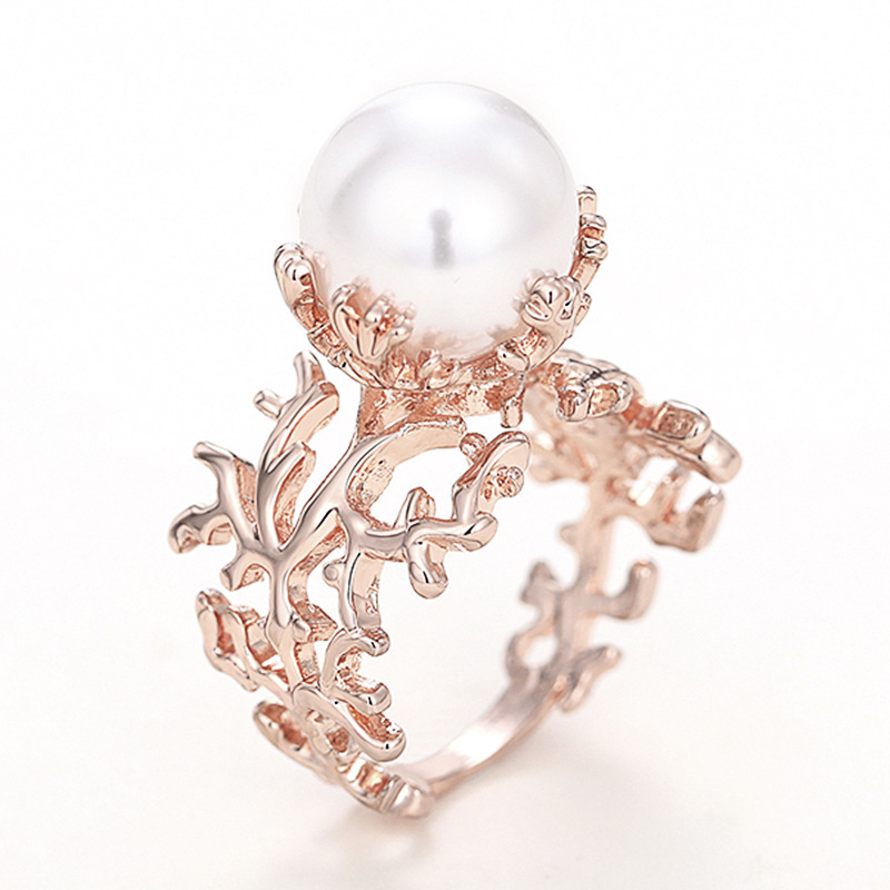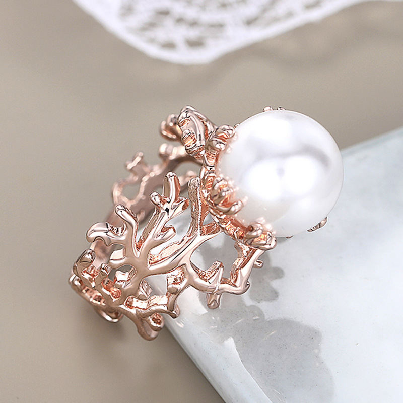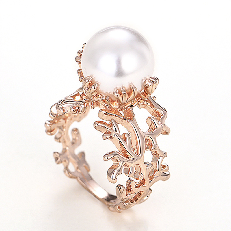 Western palace antique style hollow ring with tree branch pattern coral imitation pearl index finger ring factory direct sales