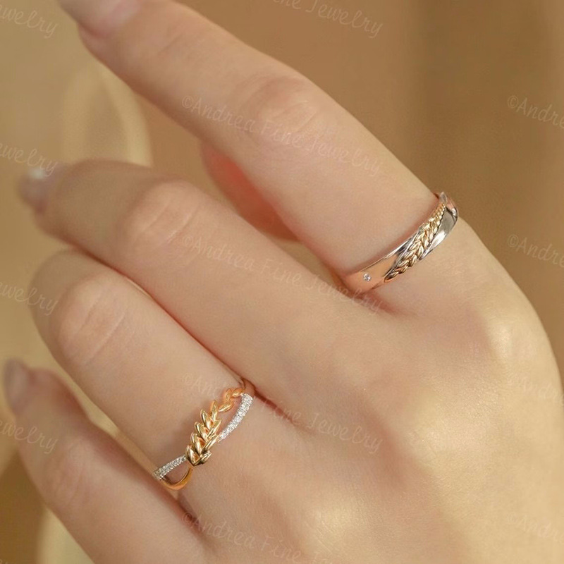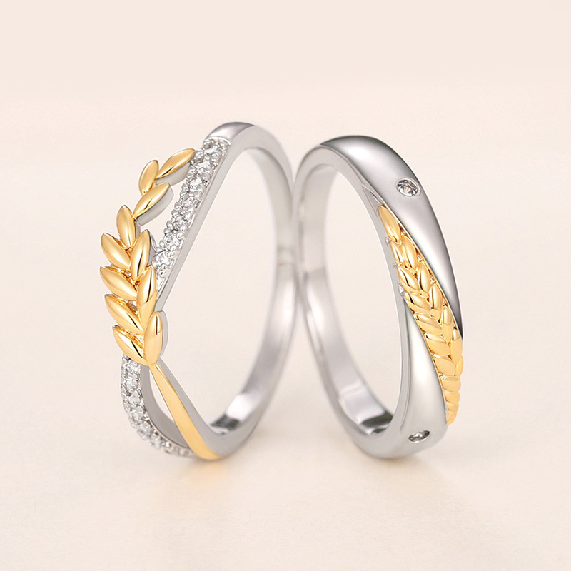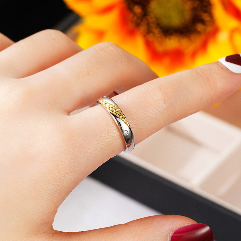 Wheat Ear Happy Couple Ring New Style Wheat Ear Two-Color All-match Ring Sui Sui Nian Nian Wedding Ring