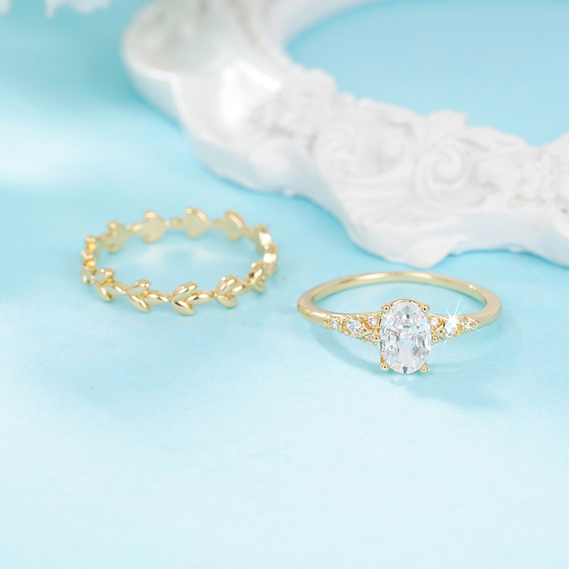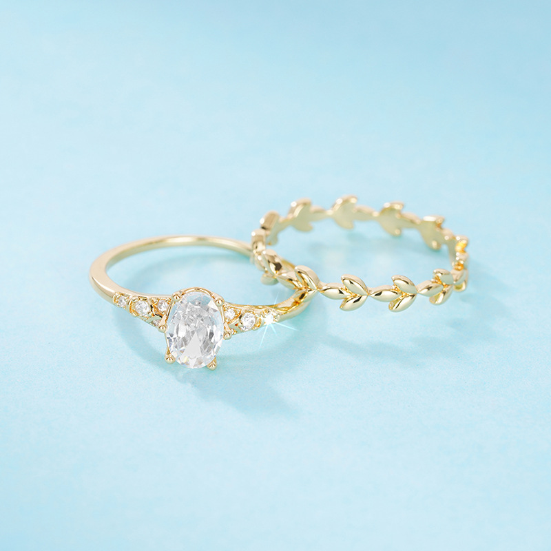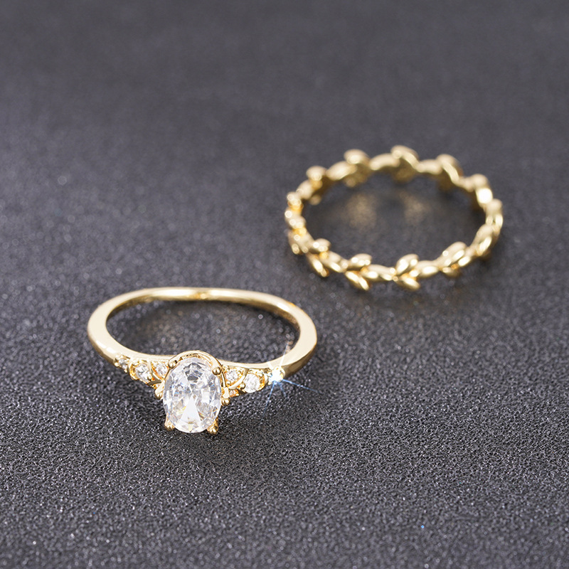 Wheat ear leaf geometric ring women's fashionable ring two-piece wedding engagement ring