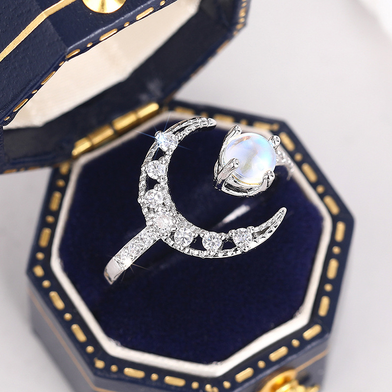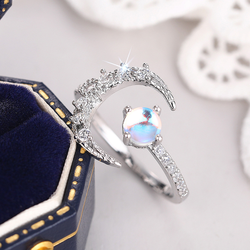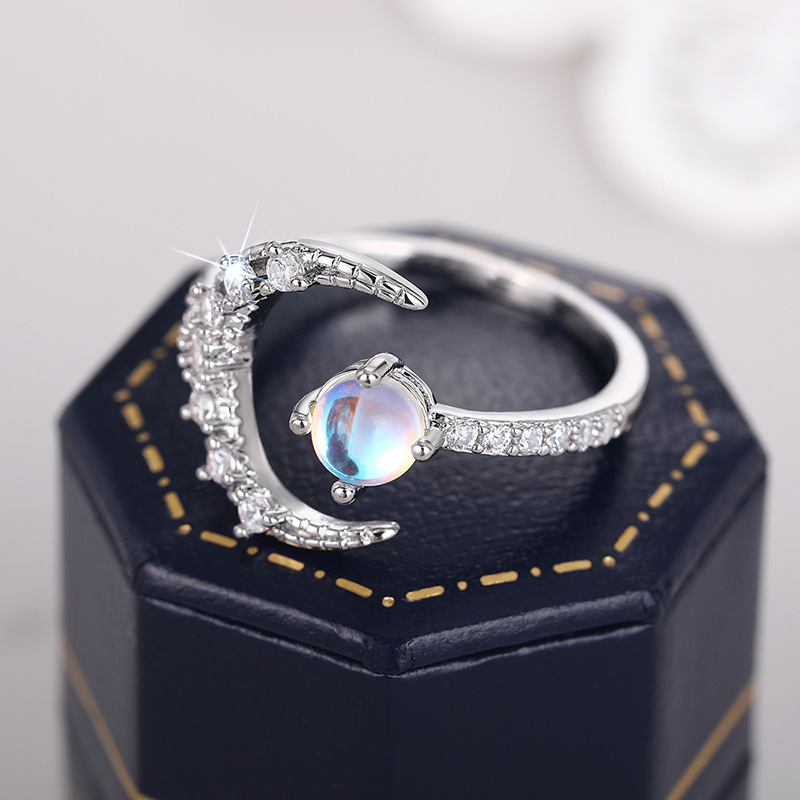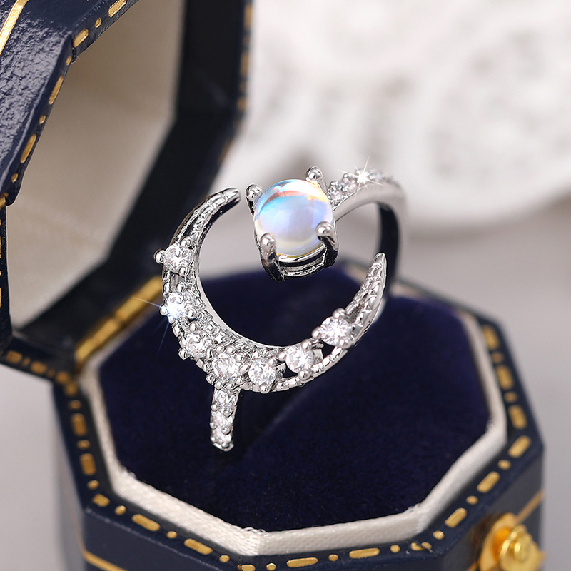 Wholesale dreamy exquisite moon ring for women imitation moonstone sweet matching jewelry daily wear ring