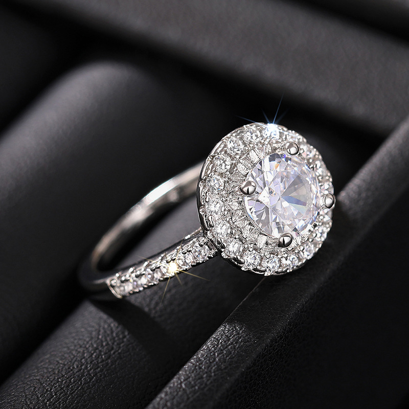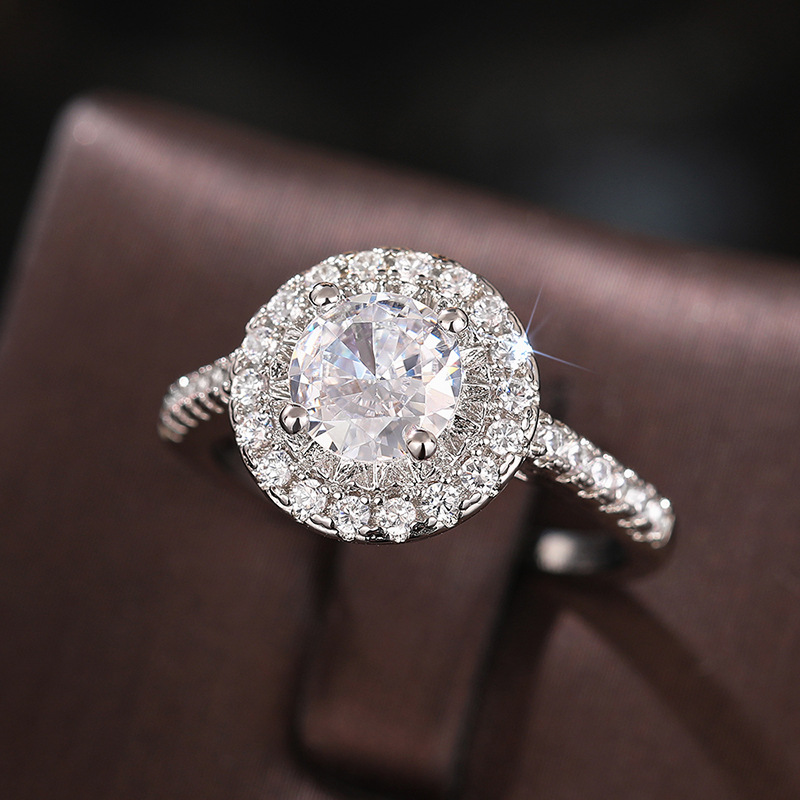 Micro-inlaid celebrity style classic all-match popular ring six-claw zircon wedding ring European and American style light luxury ring
