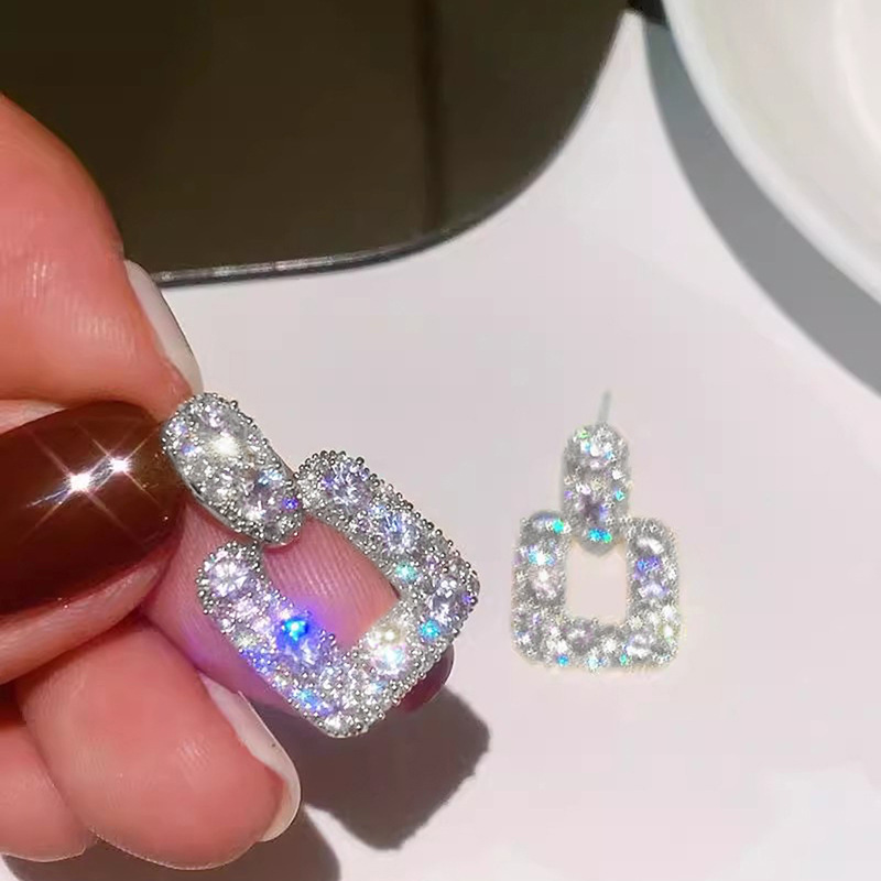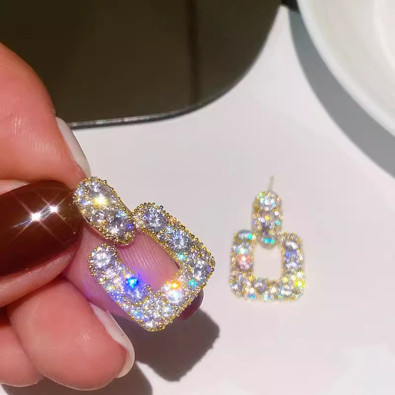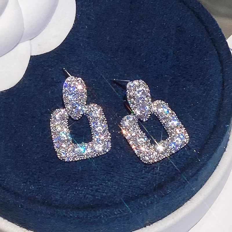 Wholesale hot selling shiny earrings with water drop square design earrings light luxury style dress matching