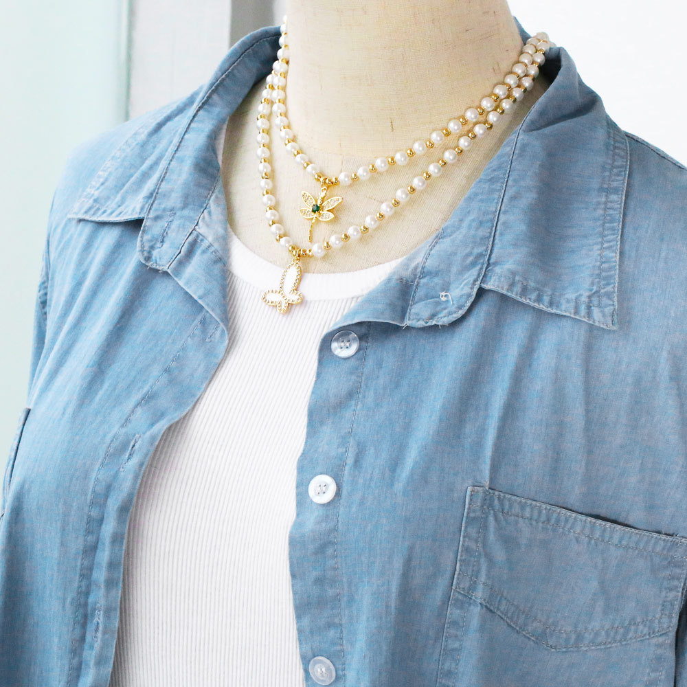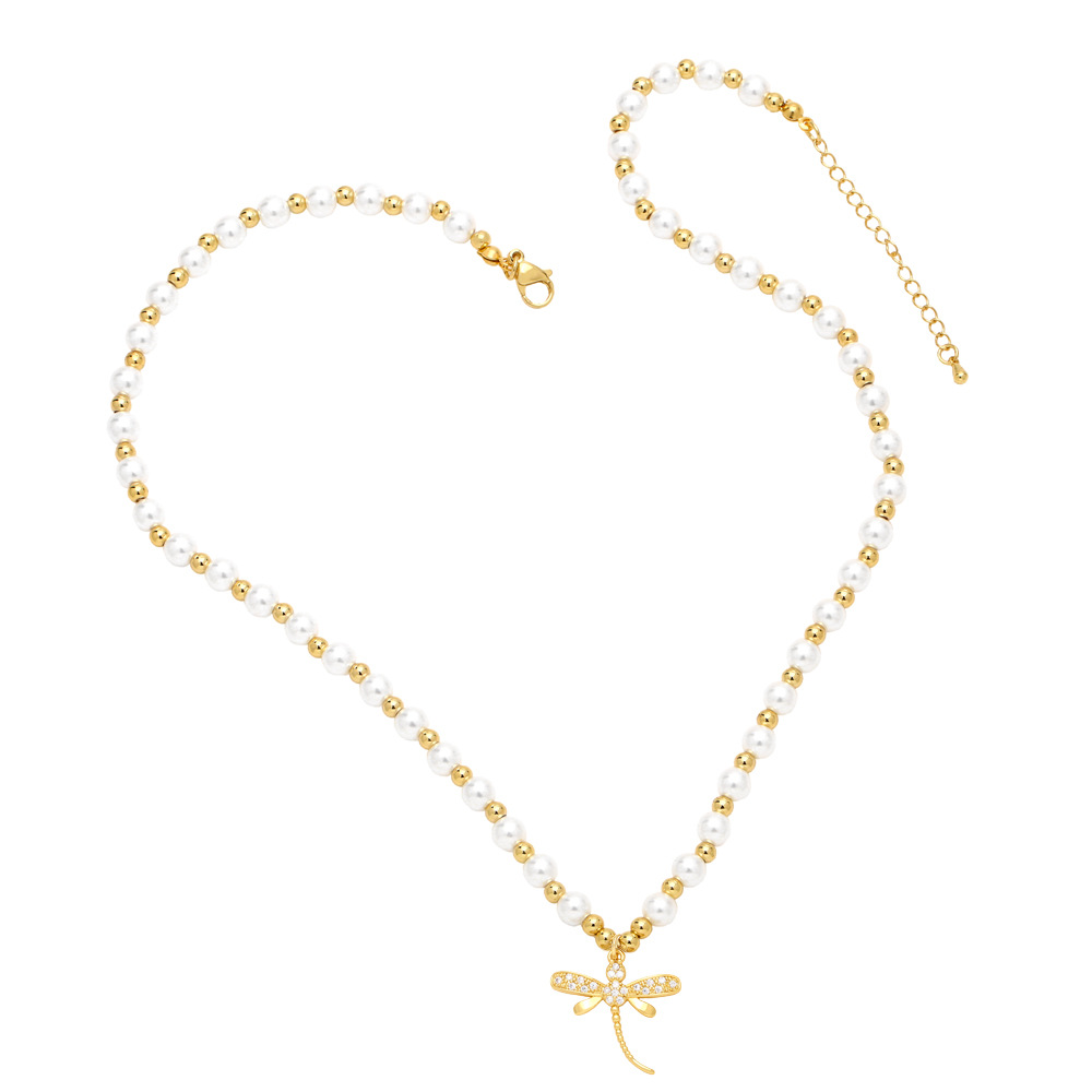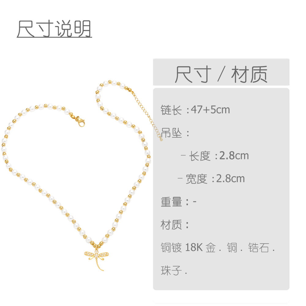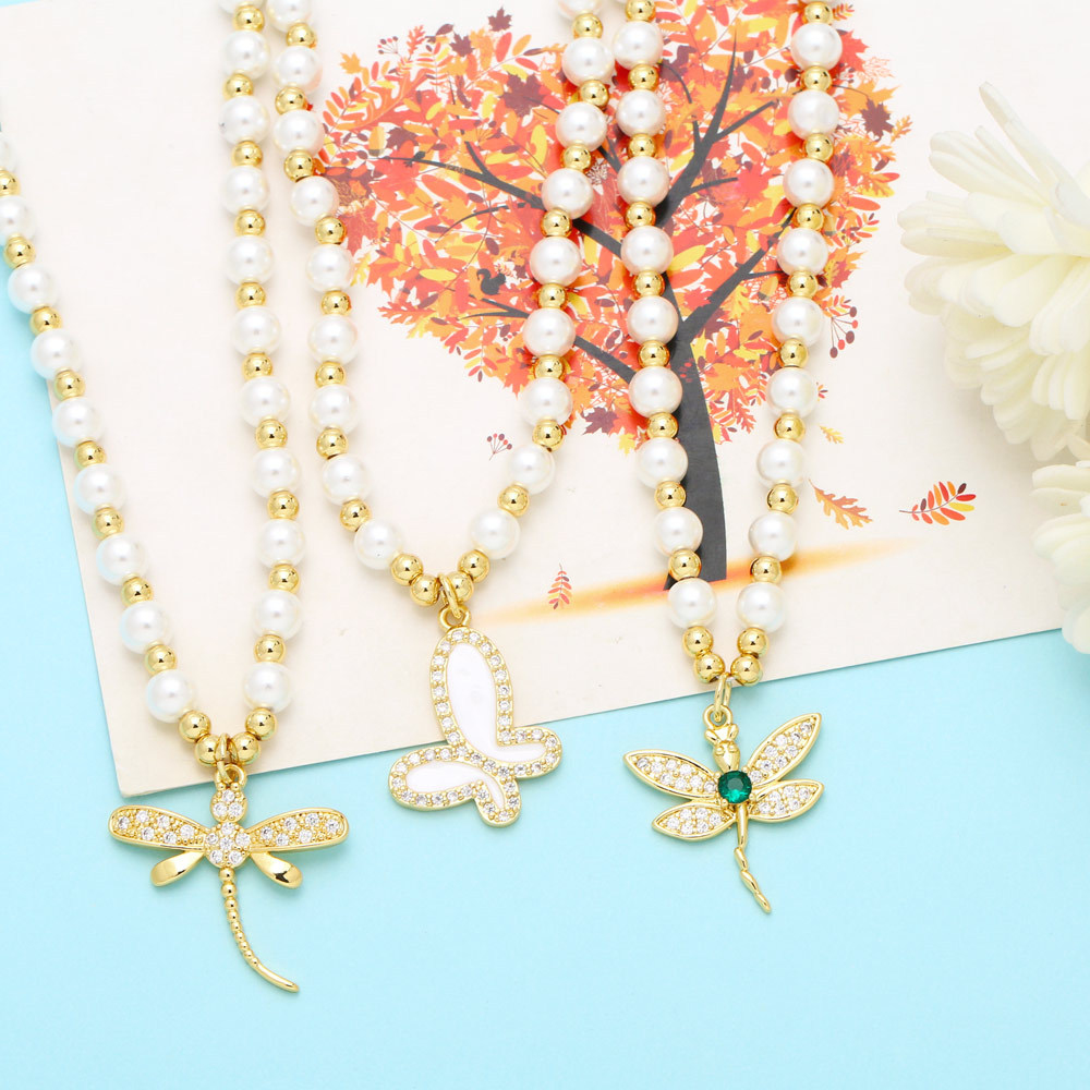 Wind pearl necklace female temperament versatile simple necklace niche butterfly dragonfly pendant clavicle chain nkb622