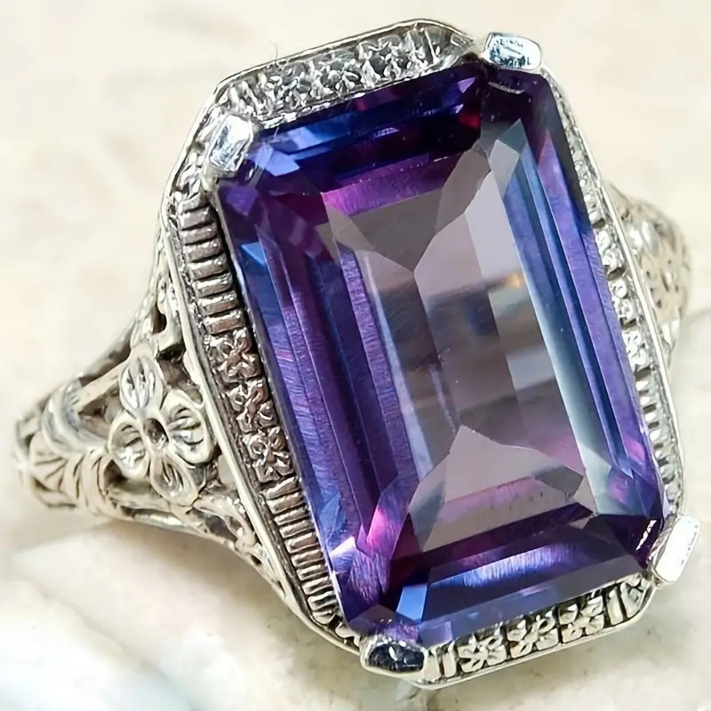 WISH hot selling retro pattern ring inlaid chamfered rectangular princess ring new ring