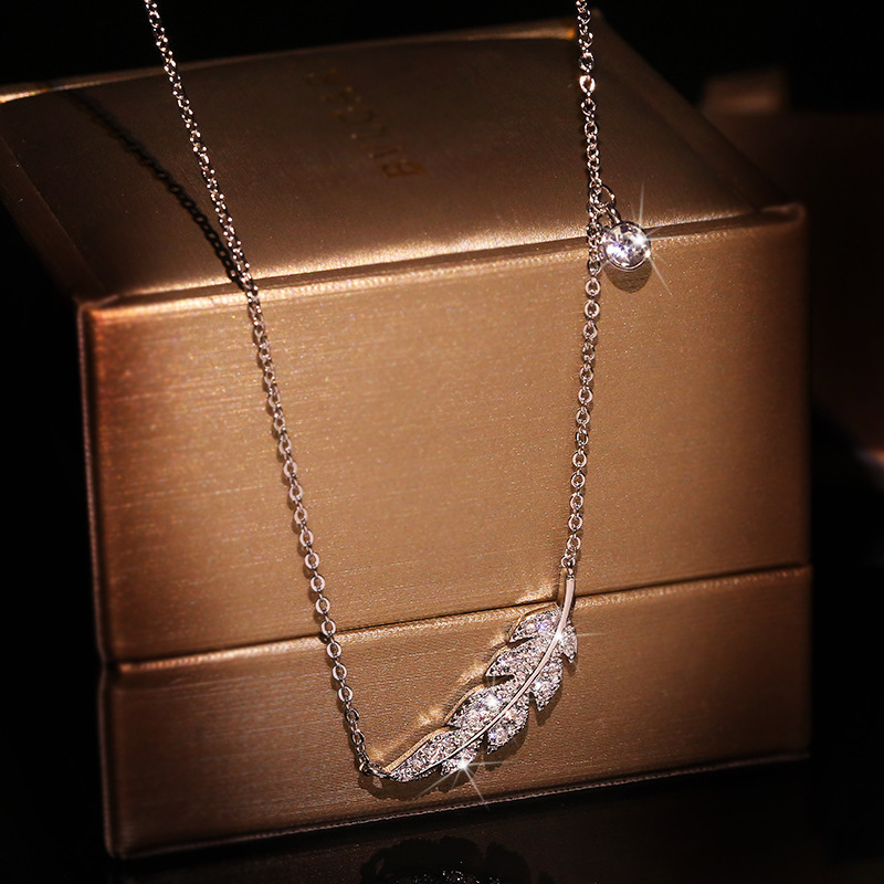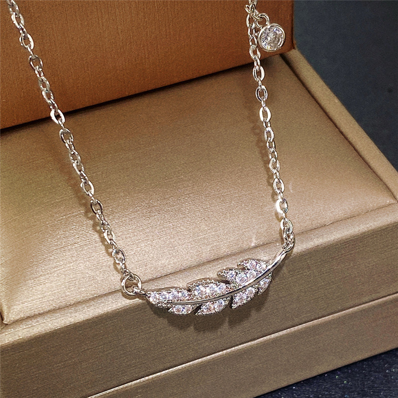Women's leaf necklace copper inlaid zircon pendant feather leaf clavicle short necklace love wings jewelry