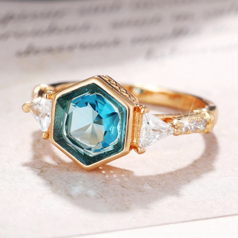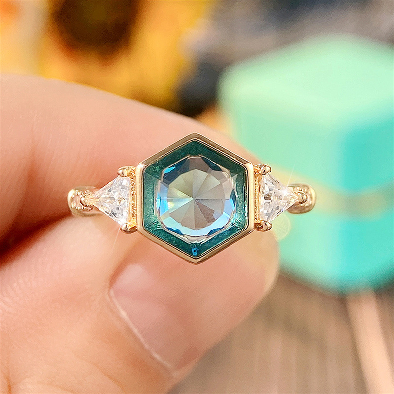 Women's ring diamond polygon geometric minimalist ring INS popular hot selling European and American personality index finger ring