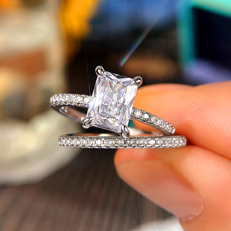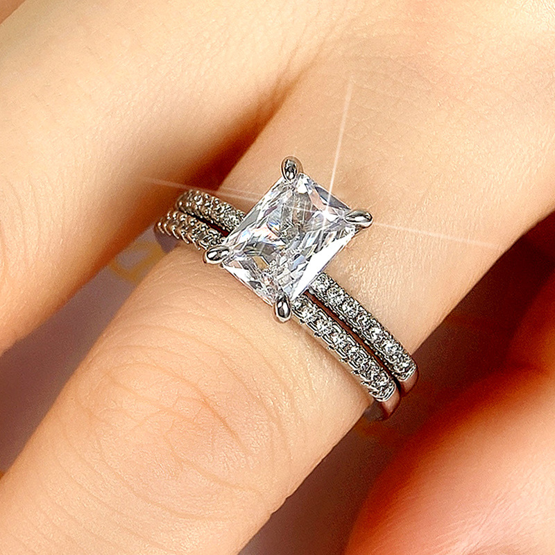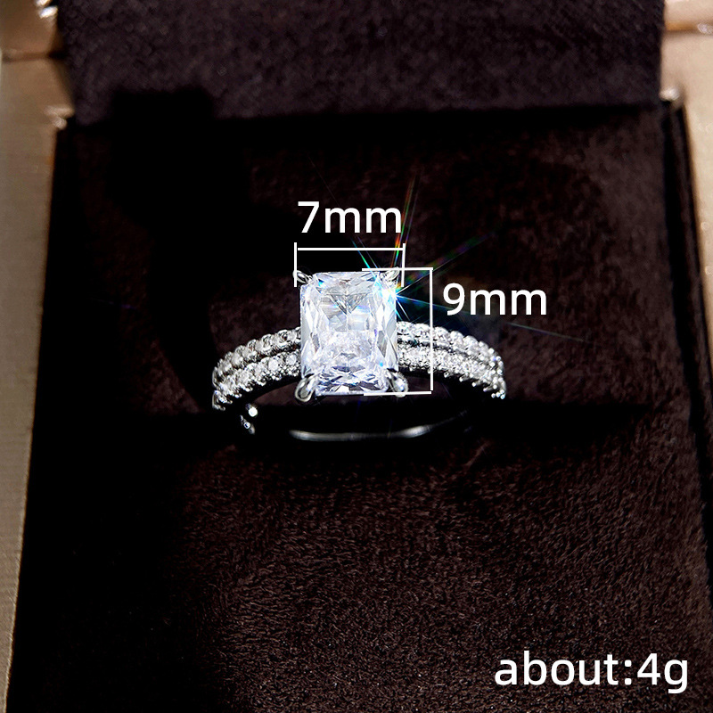 Hot selling new princess square ring European and American hot style inlaid zircon women's jewelry engagement proposal ring