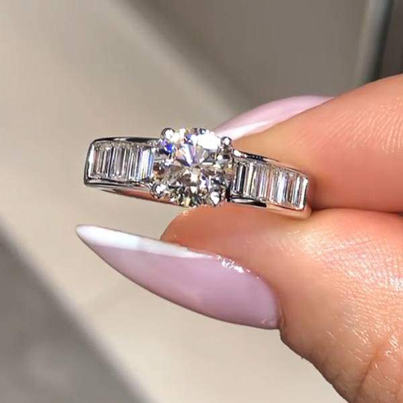 Micro-inlaid celebrity style classic all-match popular ring six-claw zircon wedding ring European and American style light luxury ring