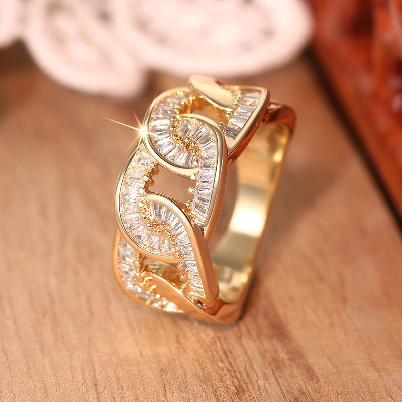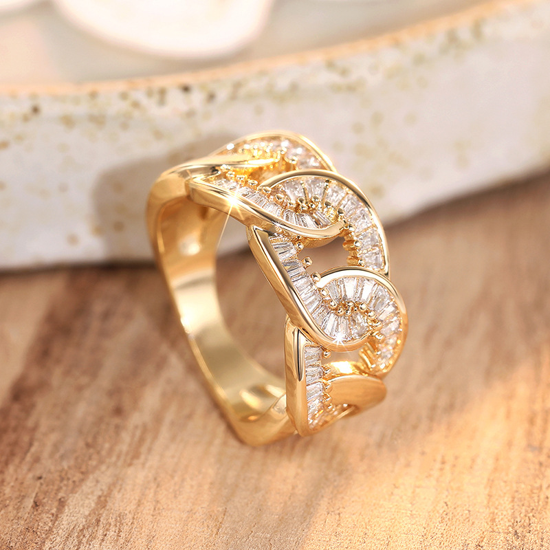 European and American luxury design ring fashionable temperament horse eye zircon ring multi-layer hollow design index finger ring