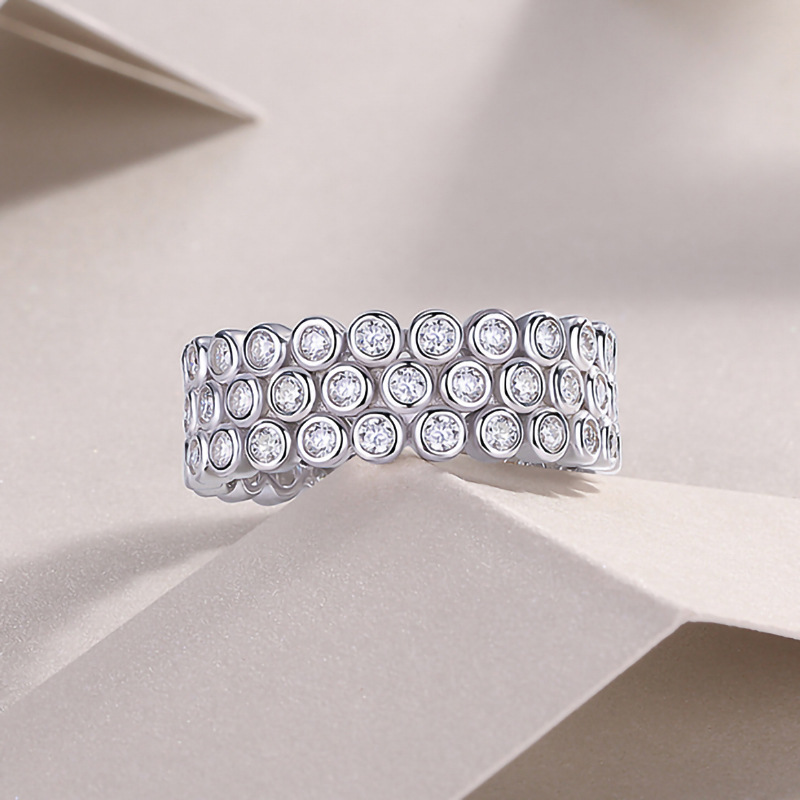 Xiaohongshu round diamond ring for women, urban fashion, personality ring, stackable, business wear accessories