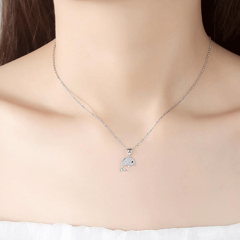 Xiaohongshu same necklace Korean version of the forest style Dolphin Love Pendant Necklace Women's niche design clavicle chain