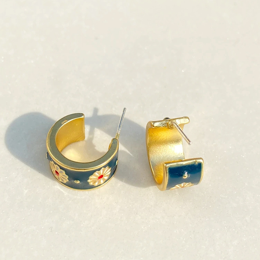 Xiaohongshu's hot-selling blue daisy earrings, simple C-shaped earrings, European and American celebrity floral earrings
