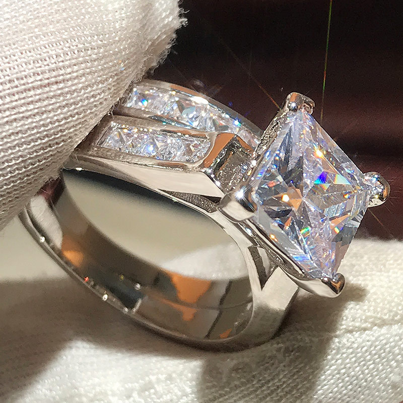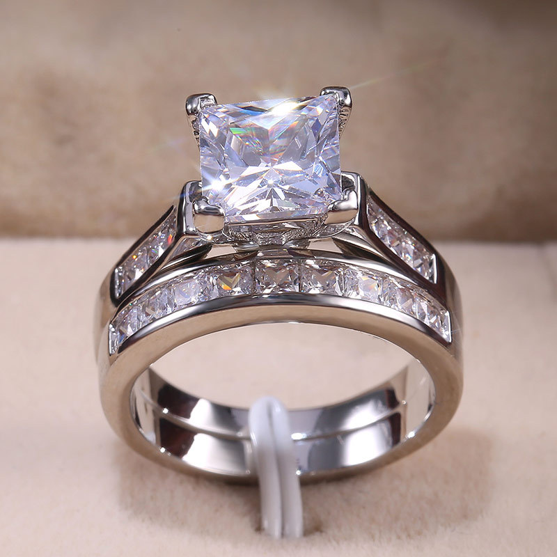 Hot selling new princess square ring European and American hot style inlaid zircon women's jewelry engagement proposal ring