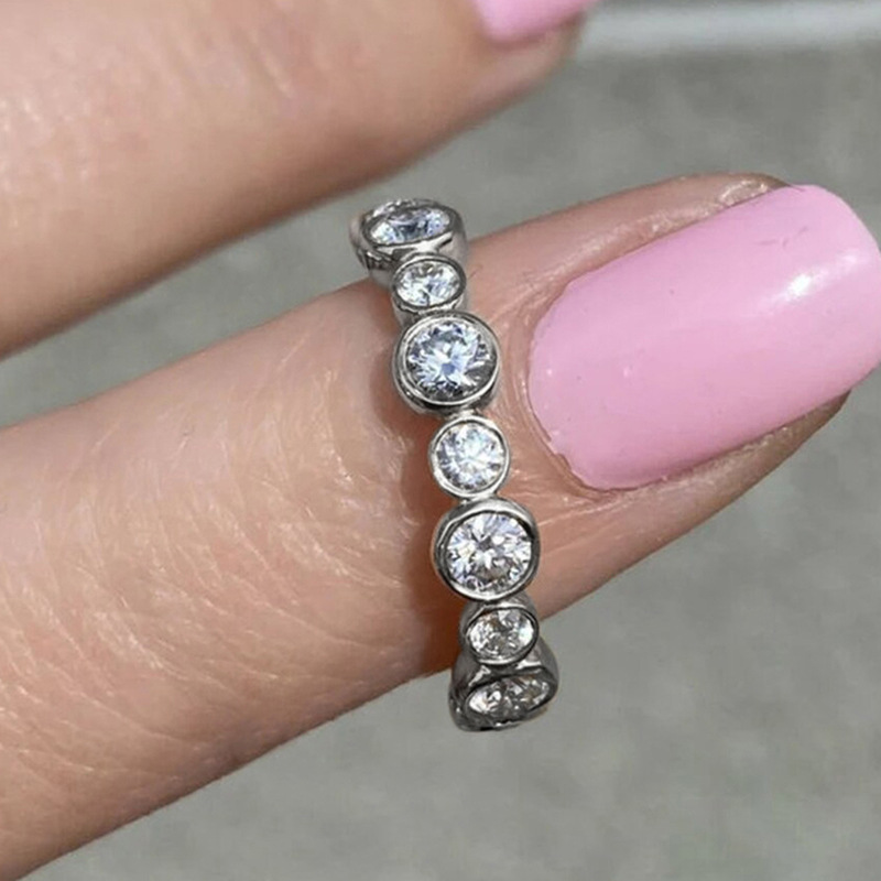 Micro-inlaid celebrity style classic all-match popular ring six-claw zircon wedding ring European and American style light luxury ring