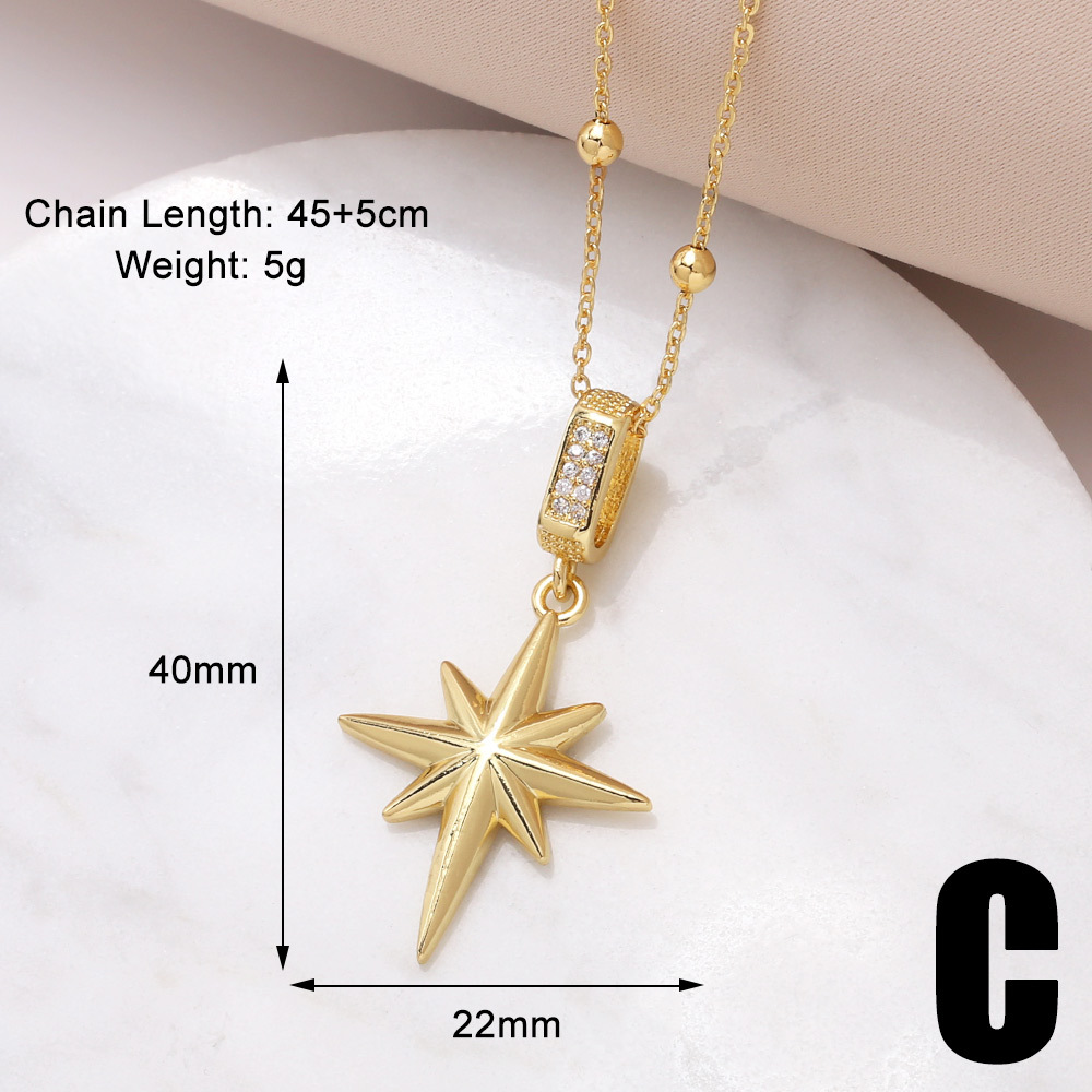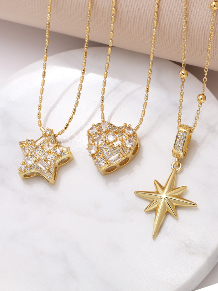 Zircon Heart Pendant Necklace for Women Copper Plated Gold Five-pointed Star Hip-hop Clavicle Chain nkr54